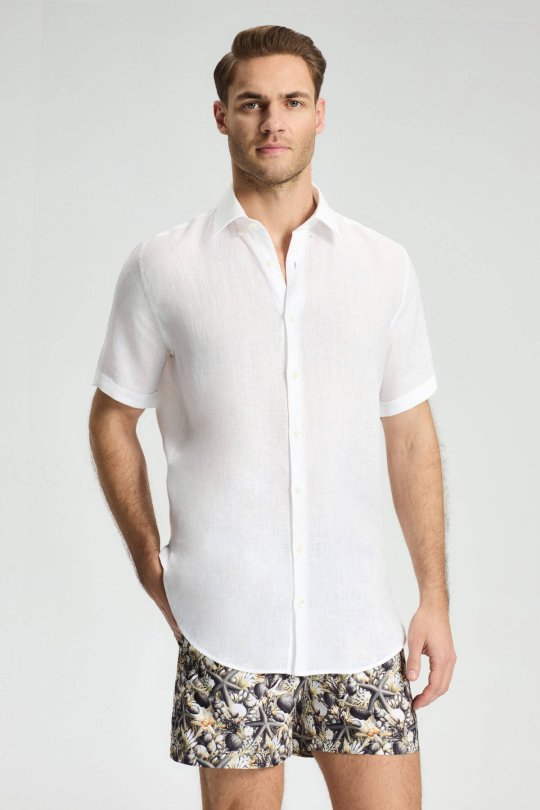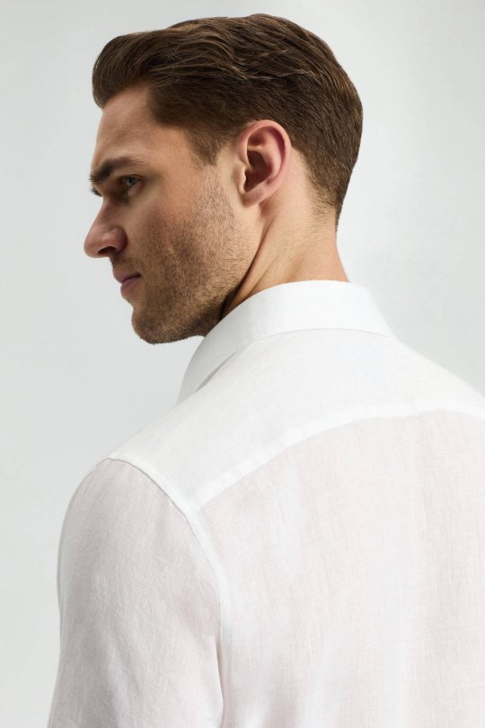 Kısa Kollu Saf Keten Beyaz Gömlek