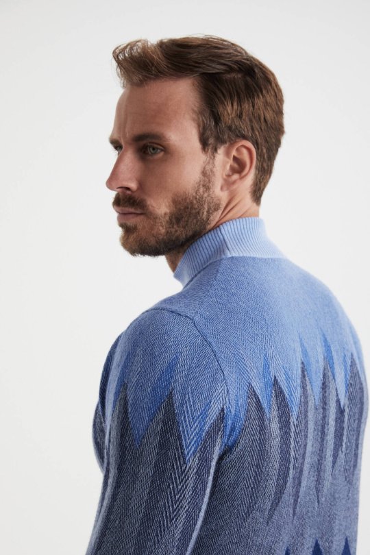 Balıkçı Yaka Desen Kaşmir Lacivert Kazak