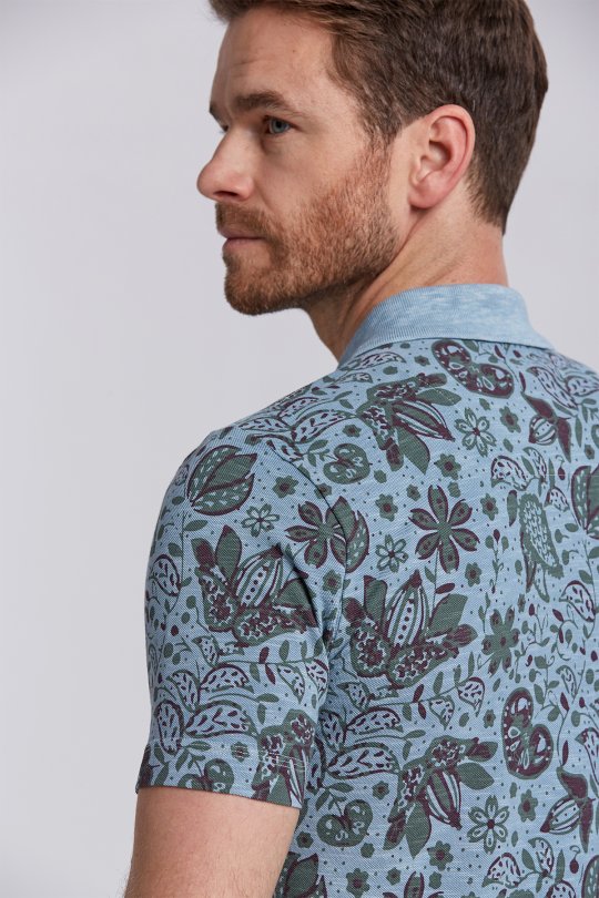 Açık Yeşil Çiçek Desen Pike Pamuk Polo T-Shirt