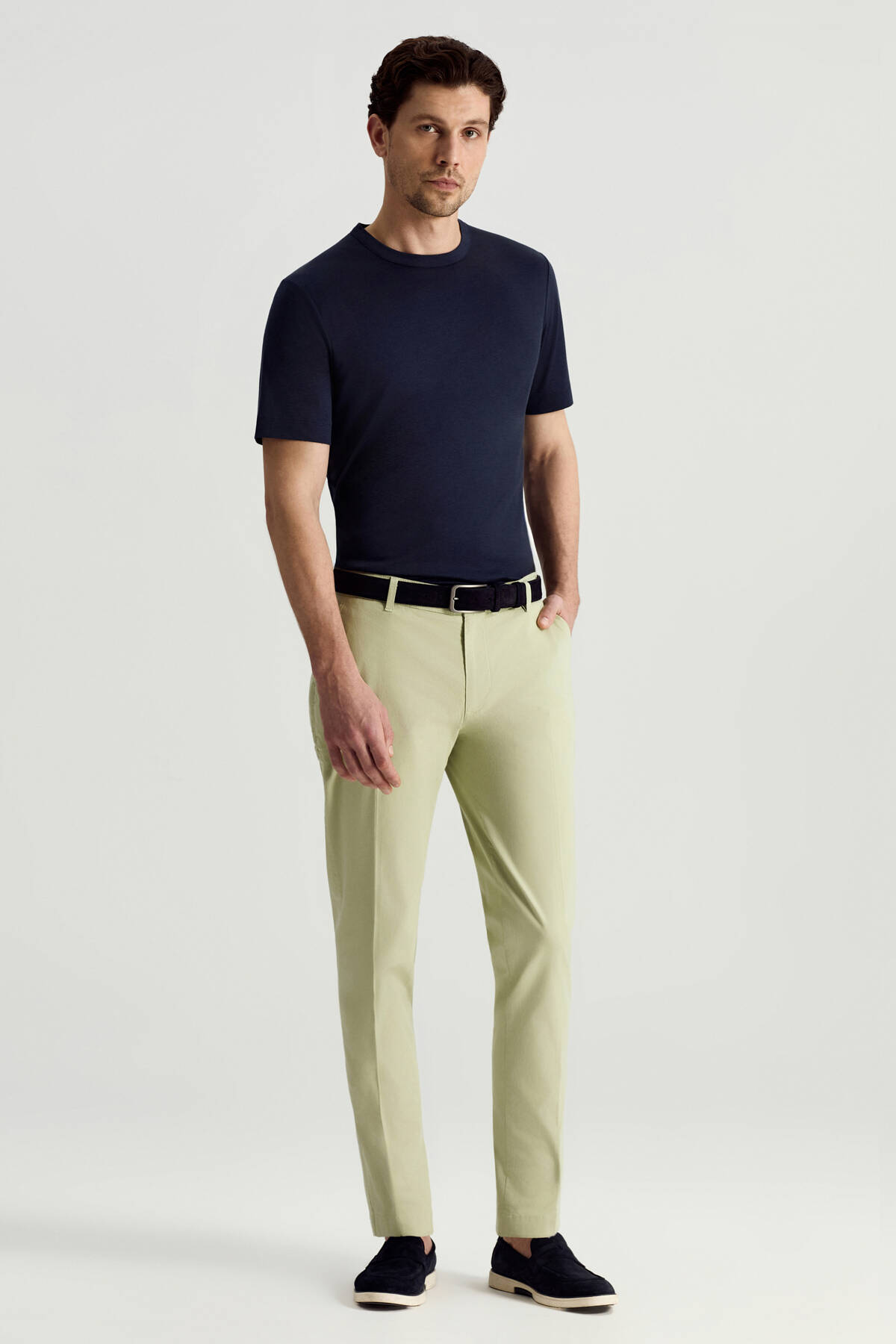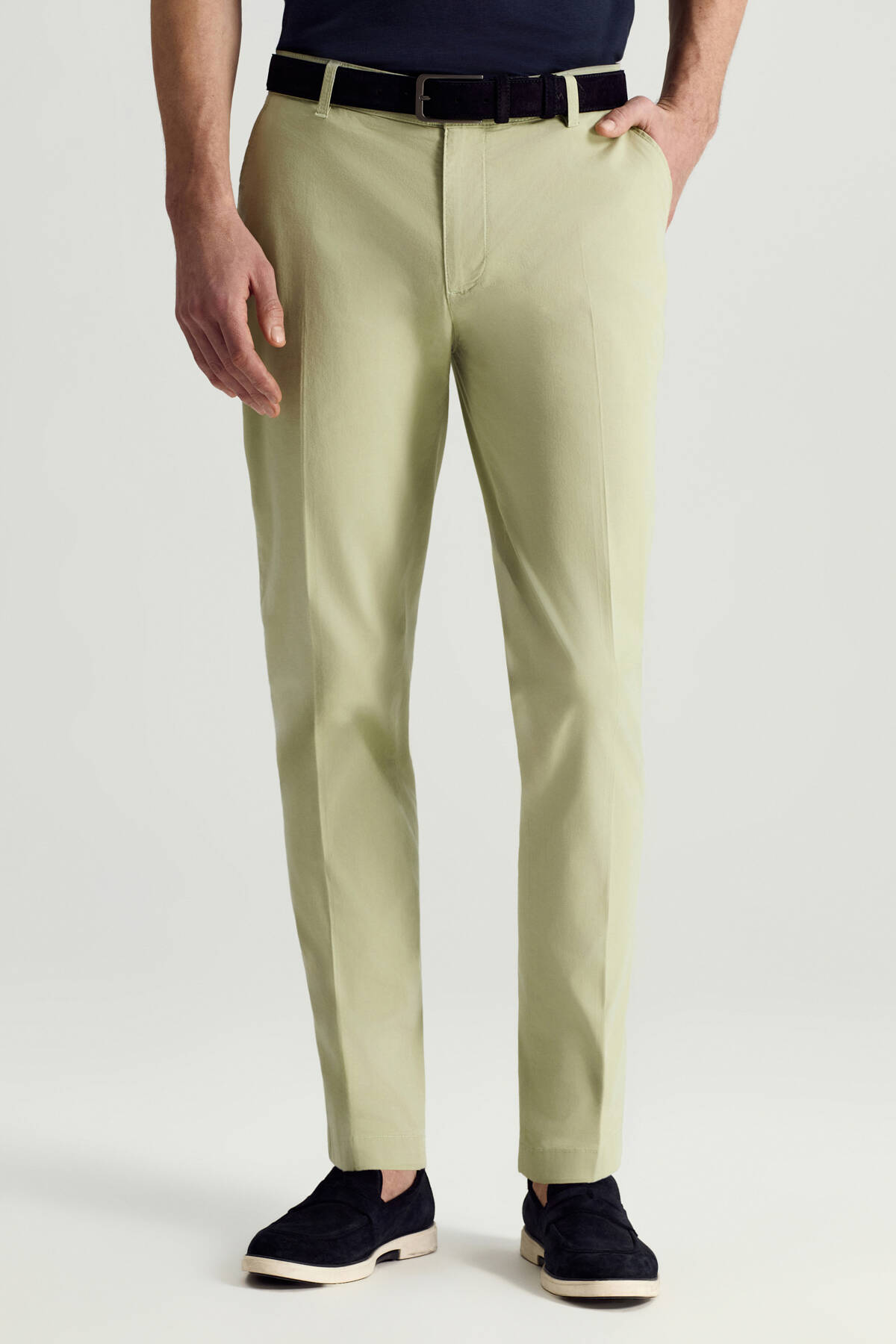 Birinci sınıf pamuktan dokunmuş, yaza uygun nefes alan kumaşı, mükemmel kalıbı, ideal bel yüksekliği ve paça genişliği ile Smart Casual tarzdaki bu chino pantolon, şık ve konforlu bir kullanım sunuyor.