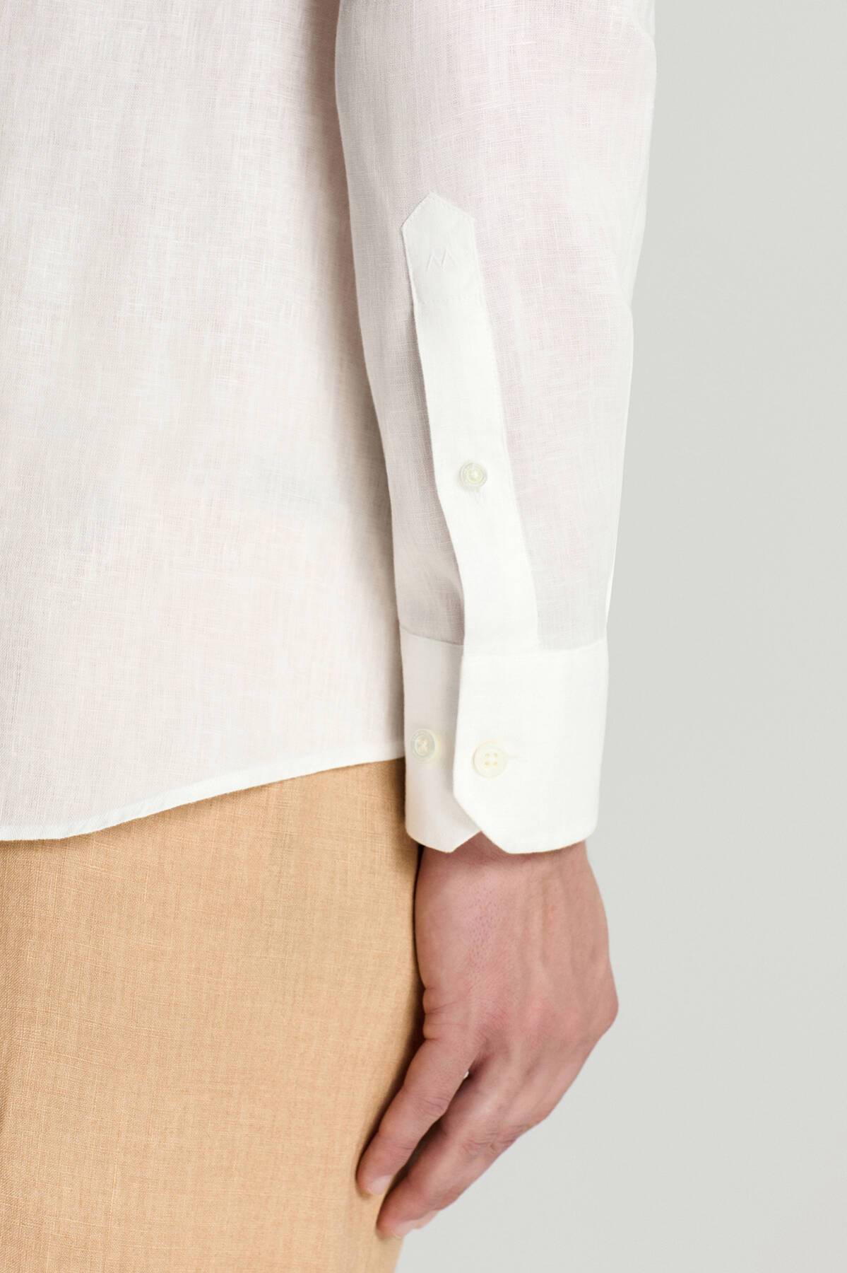 Düğmeli Yaka Saf Keten Gömlek