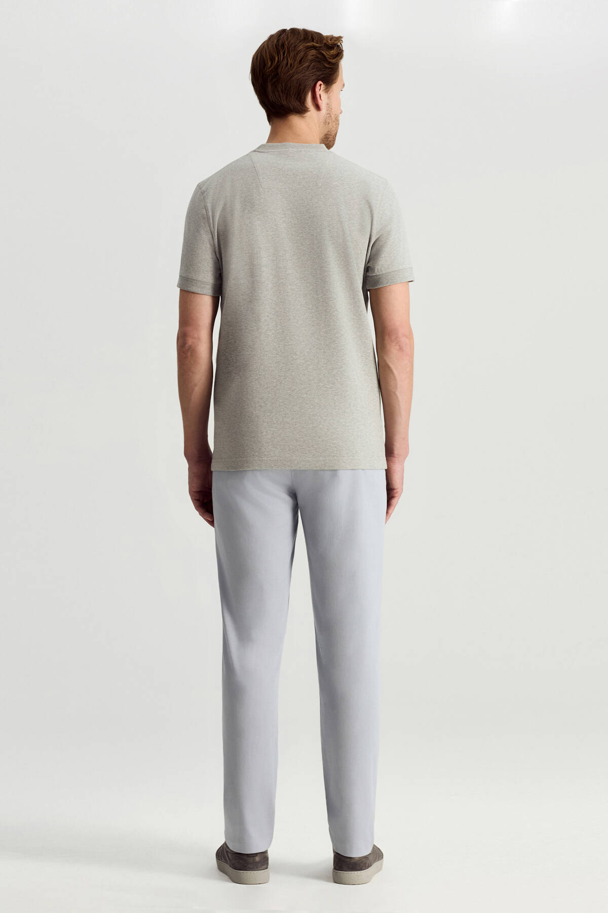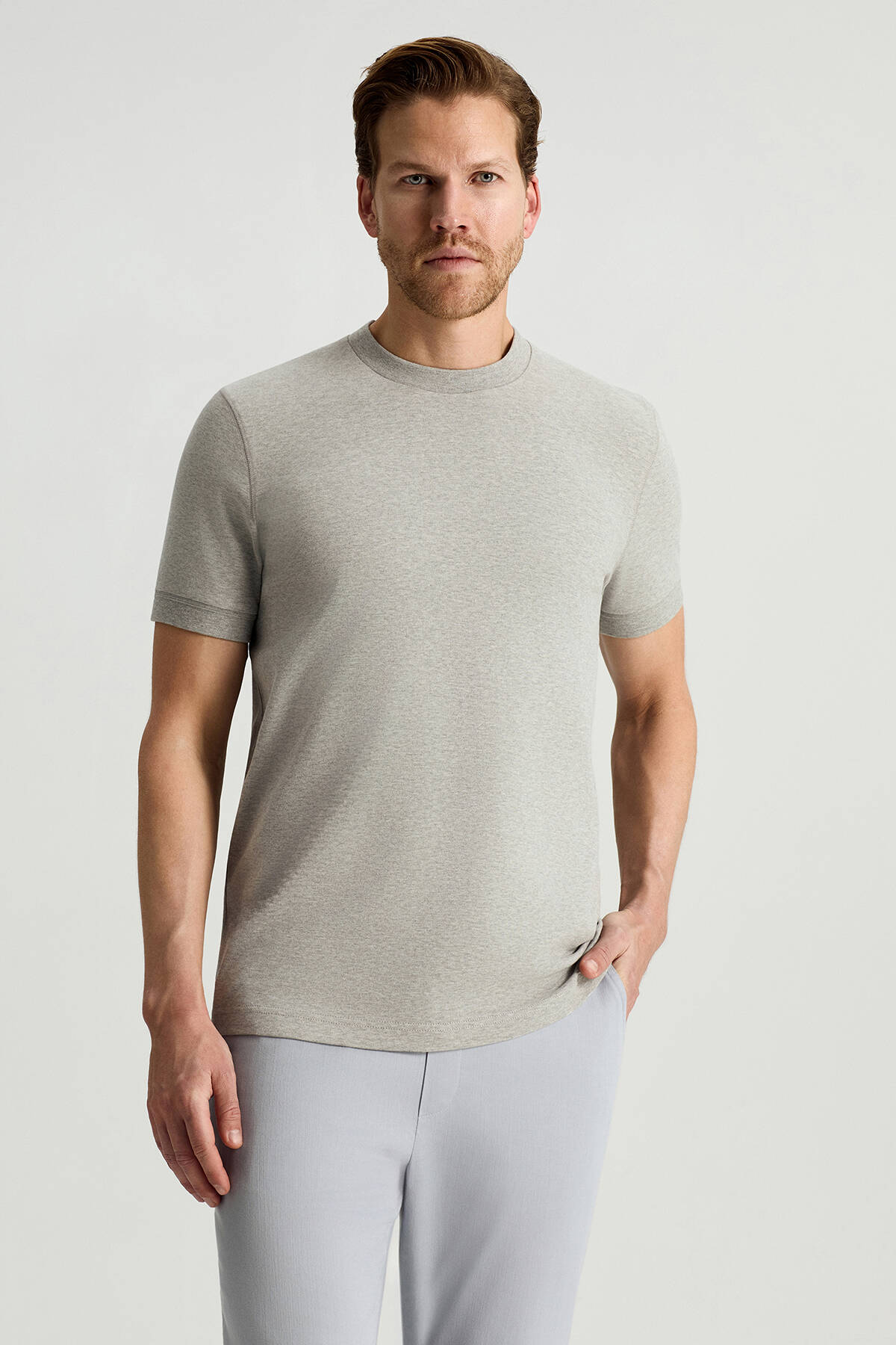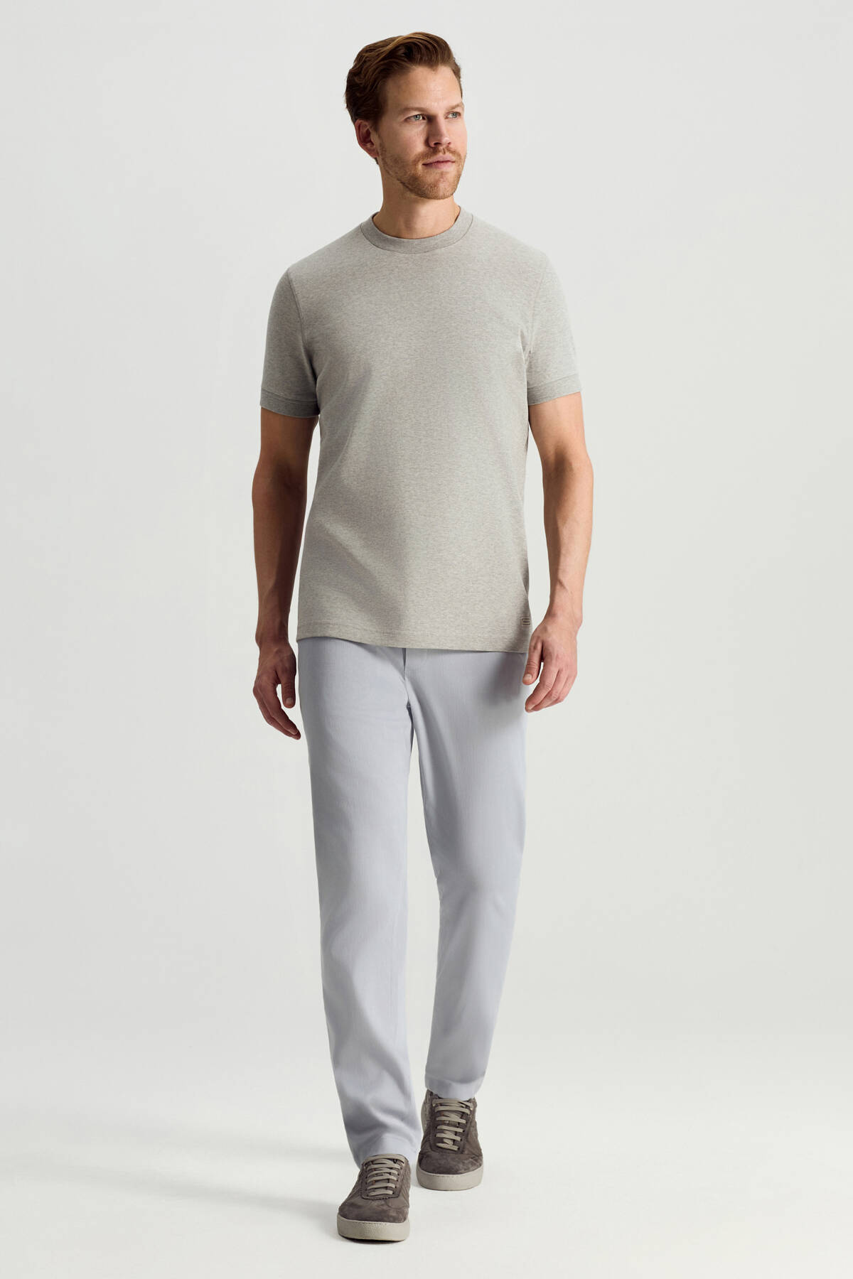 Bisiklet Yaka Rahat Resim Saf Pamuk Açık Gri T-Shirt