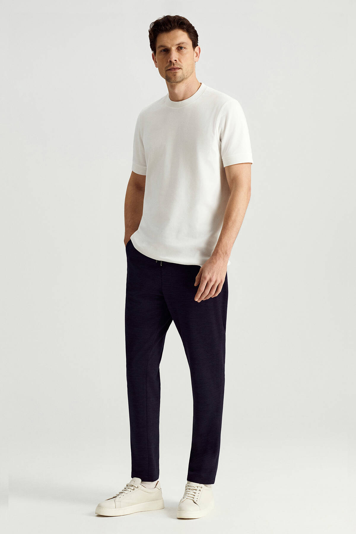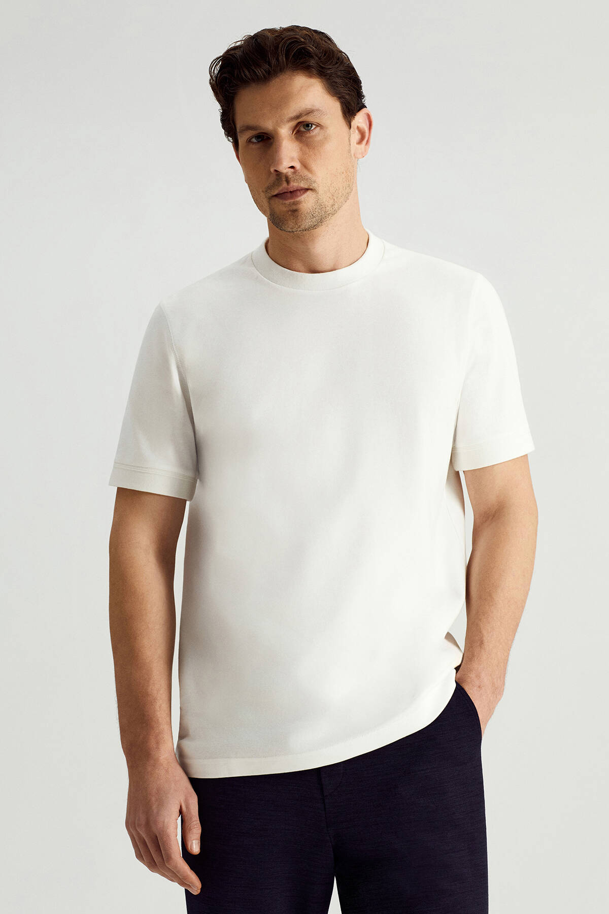 Rahat ve şık spor kombinler için üretilen bisiklet yaka beyaz t-shirt, %100 pamuklu kumaşı ile birinci sınıf kalitededir. Saf pamuğun nefes alan yumuşak dokusu ile terlemeyi minimize eden t-shirt, konforu ön planda tutan spor şıklığı ve zamansız beyaz rengi ile çok kullanışlıdır. Hem spor hem de doğal ve şık ev giyim kombinleri için idealdir.
