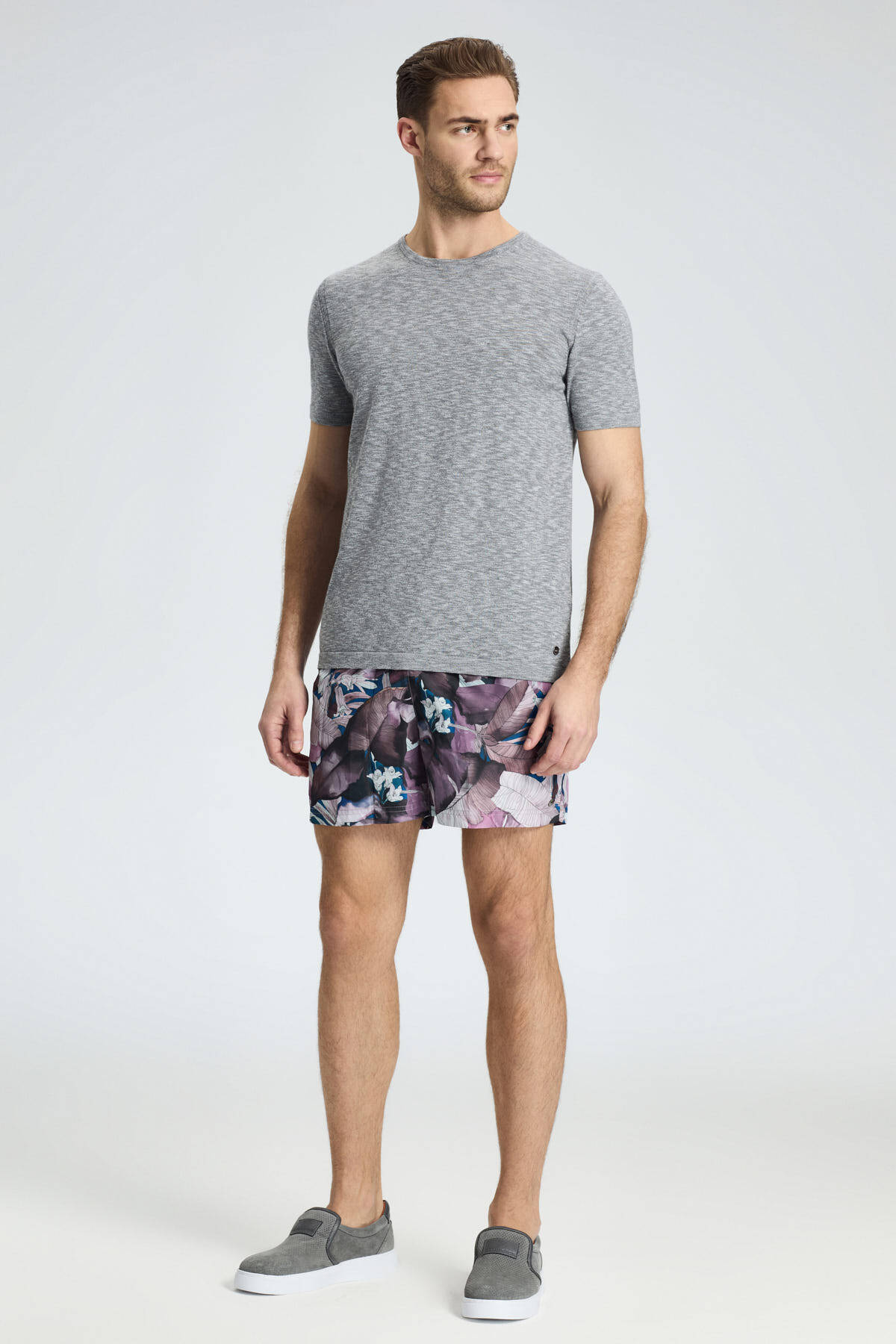 Bisiklet Yaka Saf Pamuk Açık Gri Triko T-Shirt