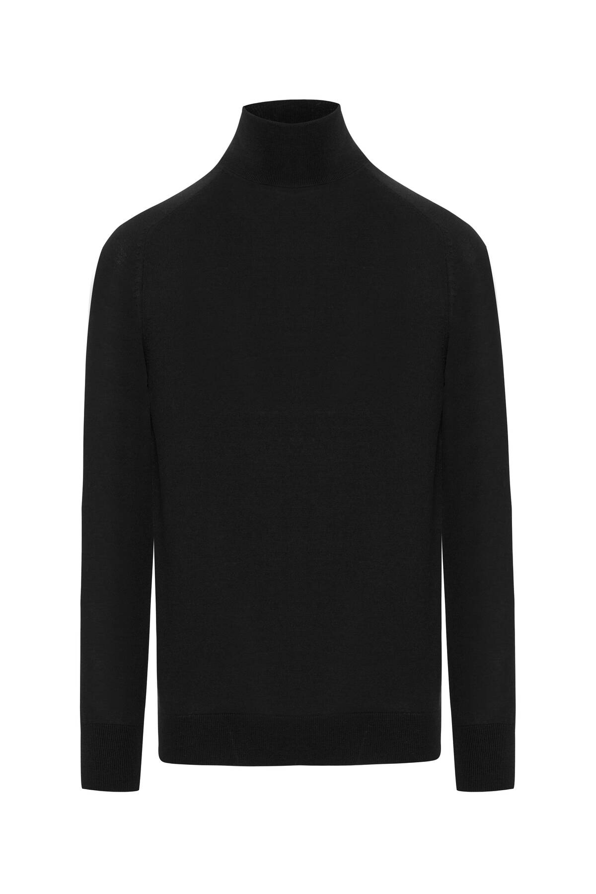 Boğazlı Slim Fit Merino Yün Siyah Triko
