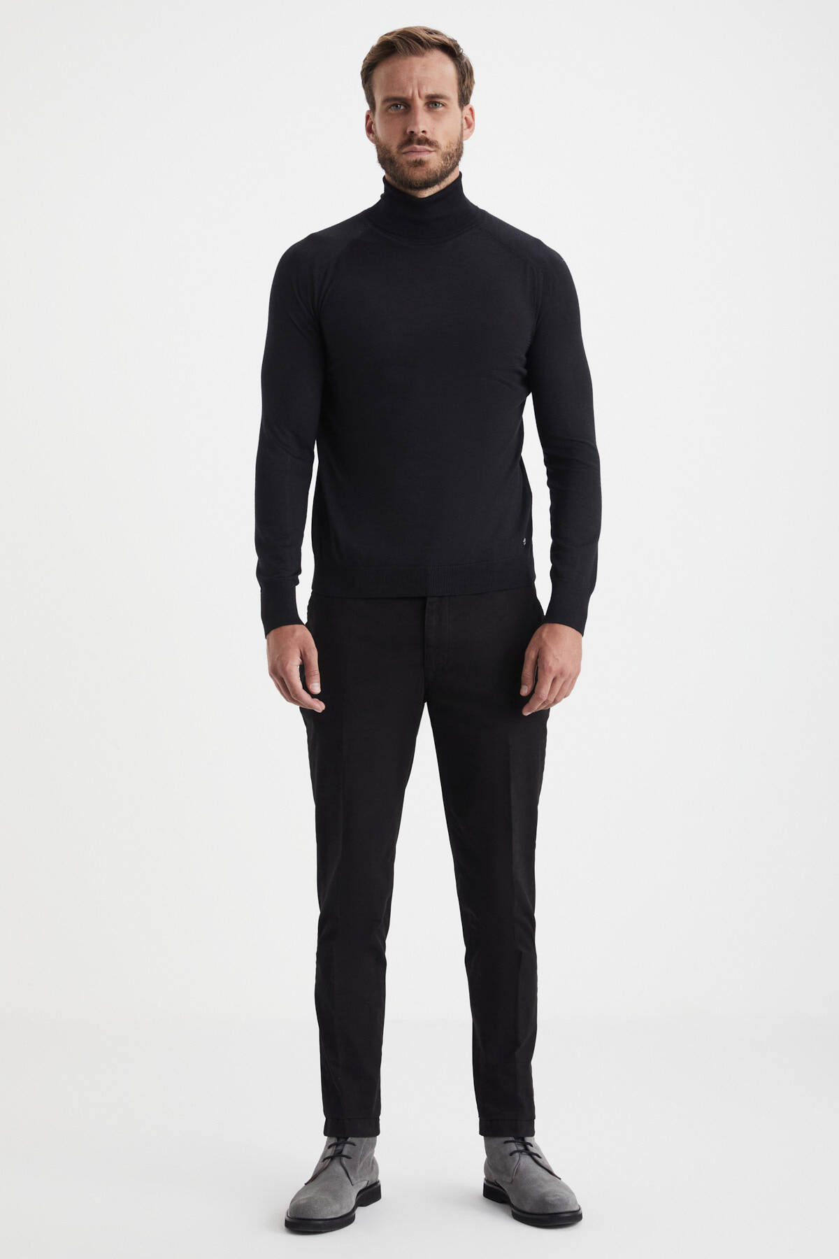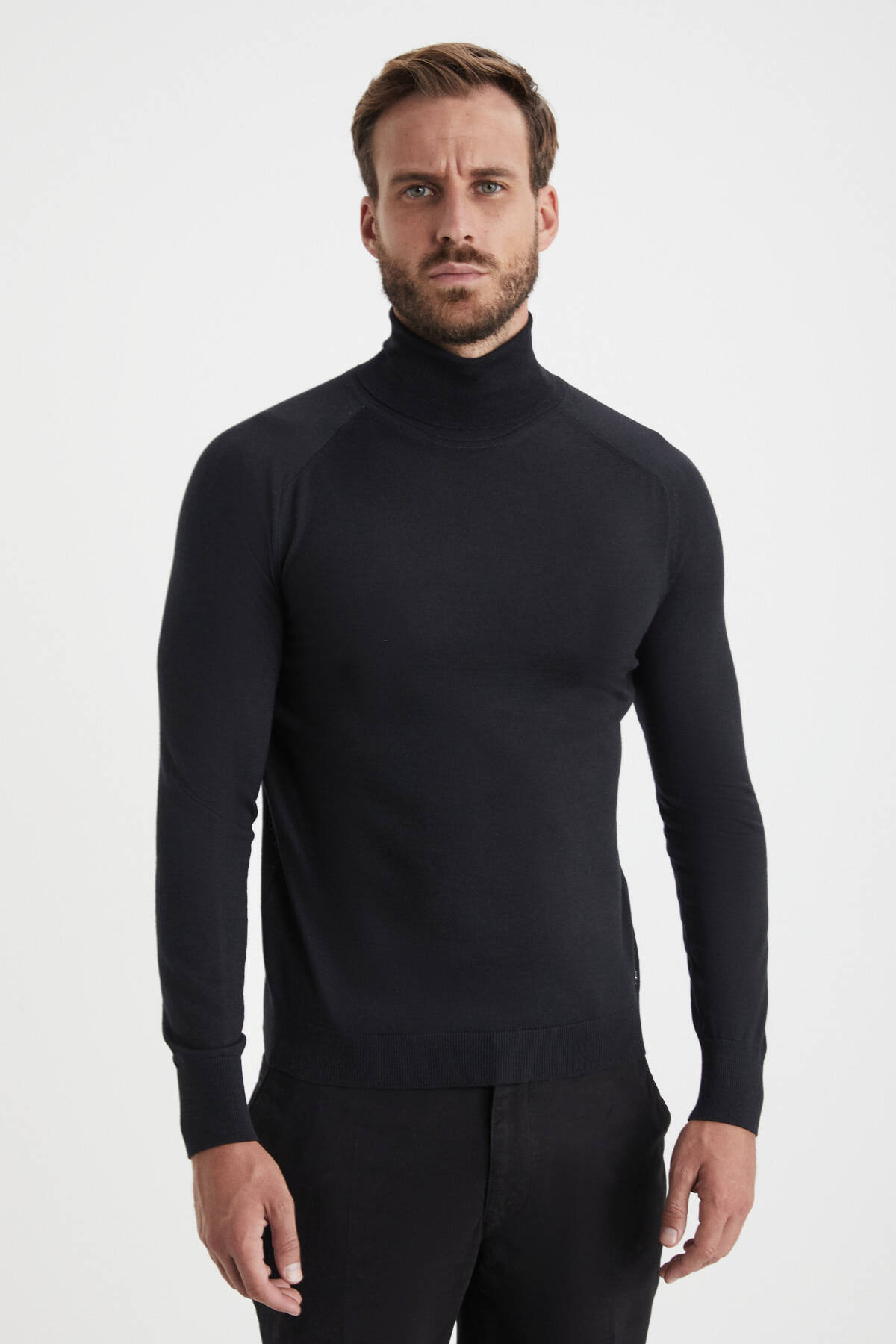Boğazlı siyah kazak, zamansız bir kombin tamamlayıcısı olarak dolabınızda mutlaka bulunmalı. Bu boğazlı triko ise extra fine Merino yününden örülme dokusu, nefes alan ince yüzeyi, tüylenmeyen ve solmayan yapısı ile yüksek standartlarınıza yakışır nitelikte. Birinci sınıf triko kalitesini Hemington farkı ile üzerinizde taşıyın.