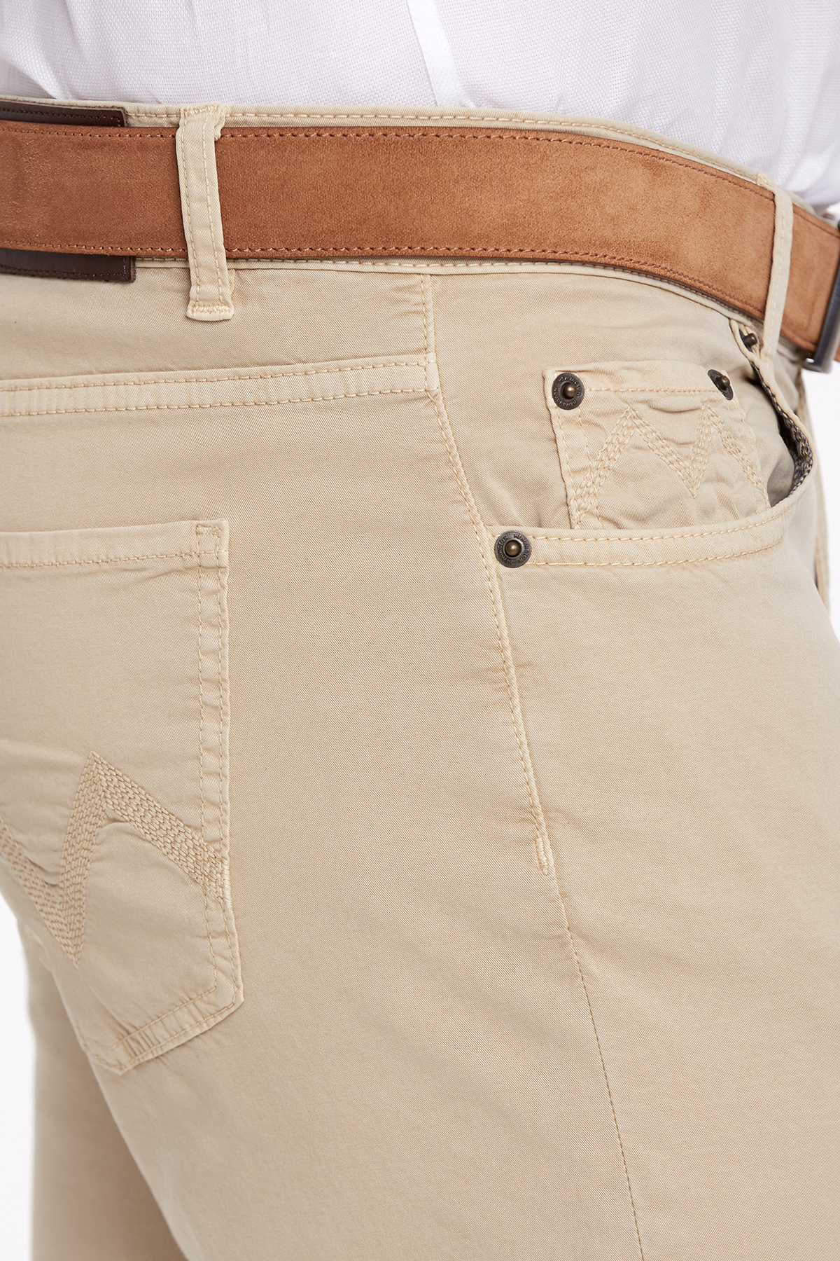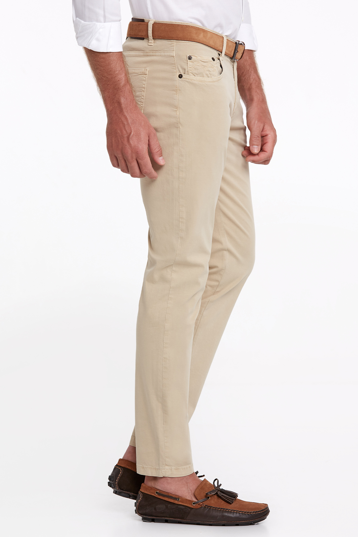Kum rengin pantolon modeli, slim fit kalıbı ile mükemmel duruş sağlar. Hareket kabiliyetinizi engellemeyen yapıya sahip erkek chino pantolon modeli, 5 cep tasarımı ile fonksiyonel bir kullanım sunarken, hafta sonu ve business kombinleriniz için de şık bir kombin tamamlayıcısıdır.