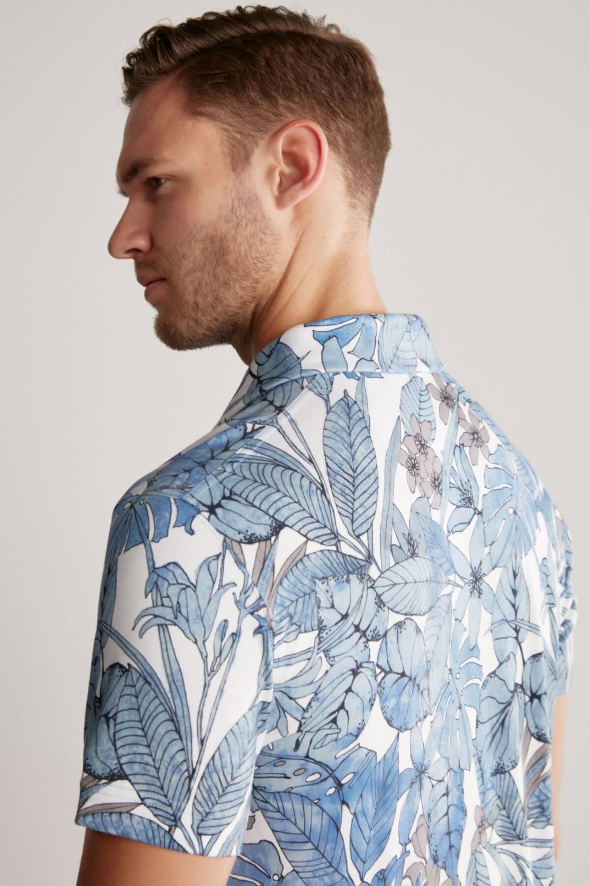 Çiçek Desen Mavi Polo Yaka T-Shirt