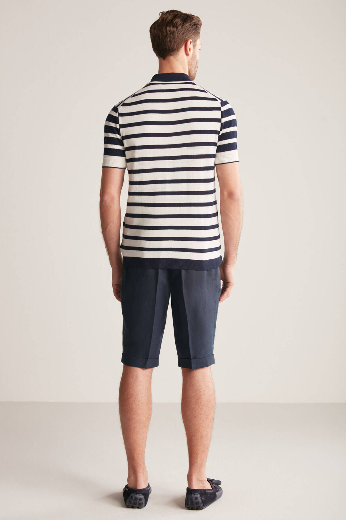 Çizgi Desen Fermuar Detaylı Lacivert Triko Polo