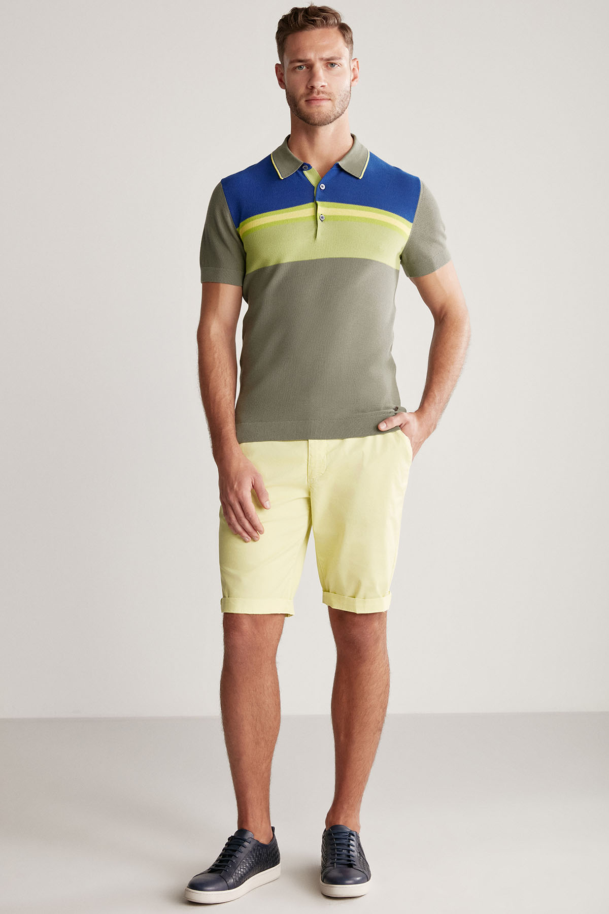 İddialı ve göz alıcı bir stil için çizgi desenli haki triko polo tişörtü keşfedin. Dikkat çeken rengi ve çizgi desenleri ile Hemington’ın sofistike giyim zevkini yansıtan erkek polo yaka tişört, triko şıklığını ve konforunu yazlık kombinlerinize taşır. %100 doğal Eğe Pamuğu içeriği sayesinde terletmez, gün boyu konfor sağlar.