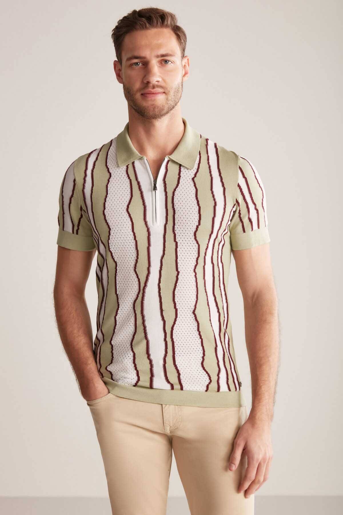 Çizgi Detaylı Yeşil Merserize Pamuk Triko Polo