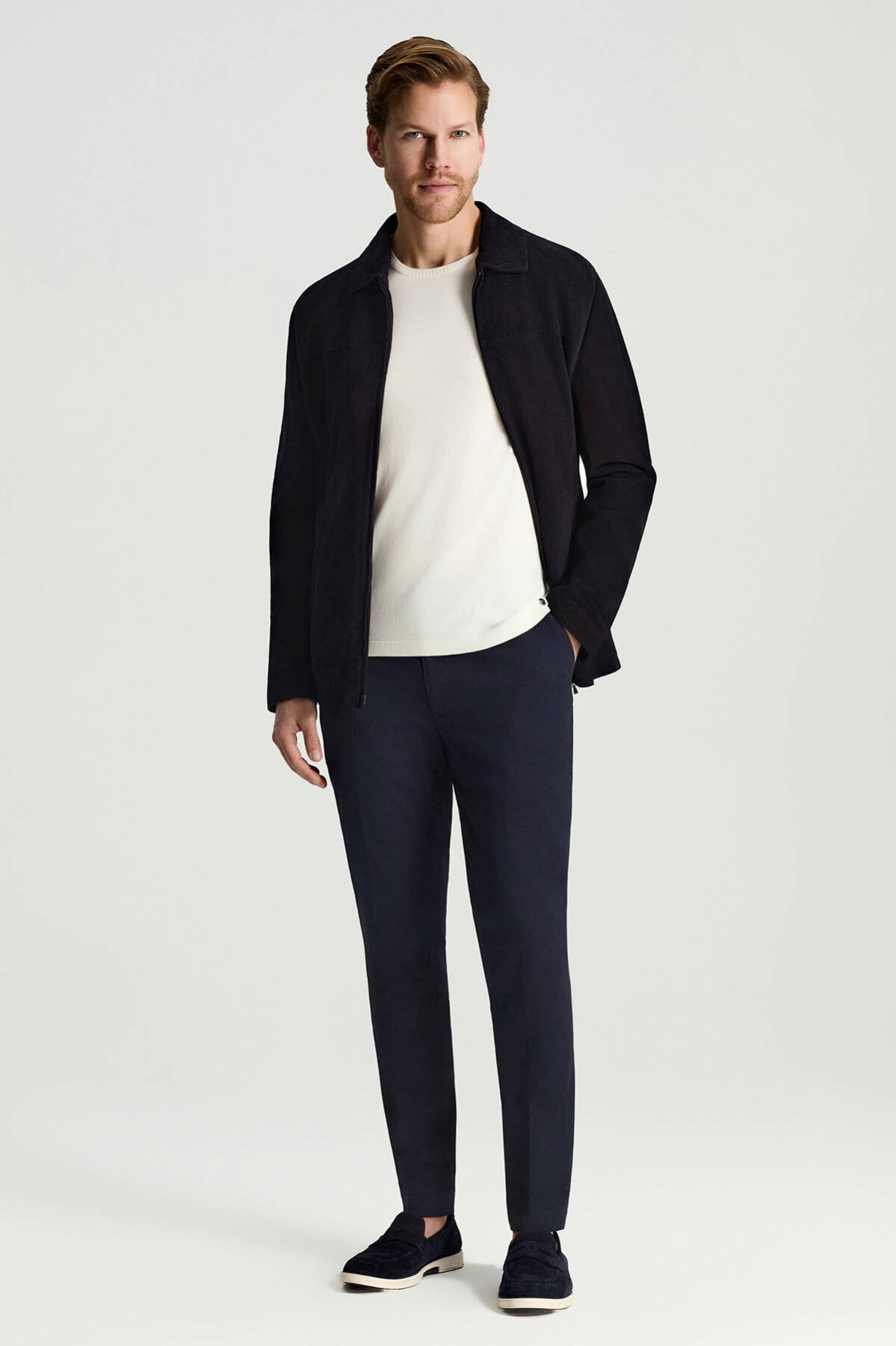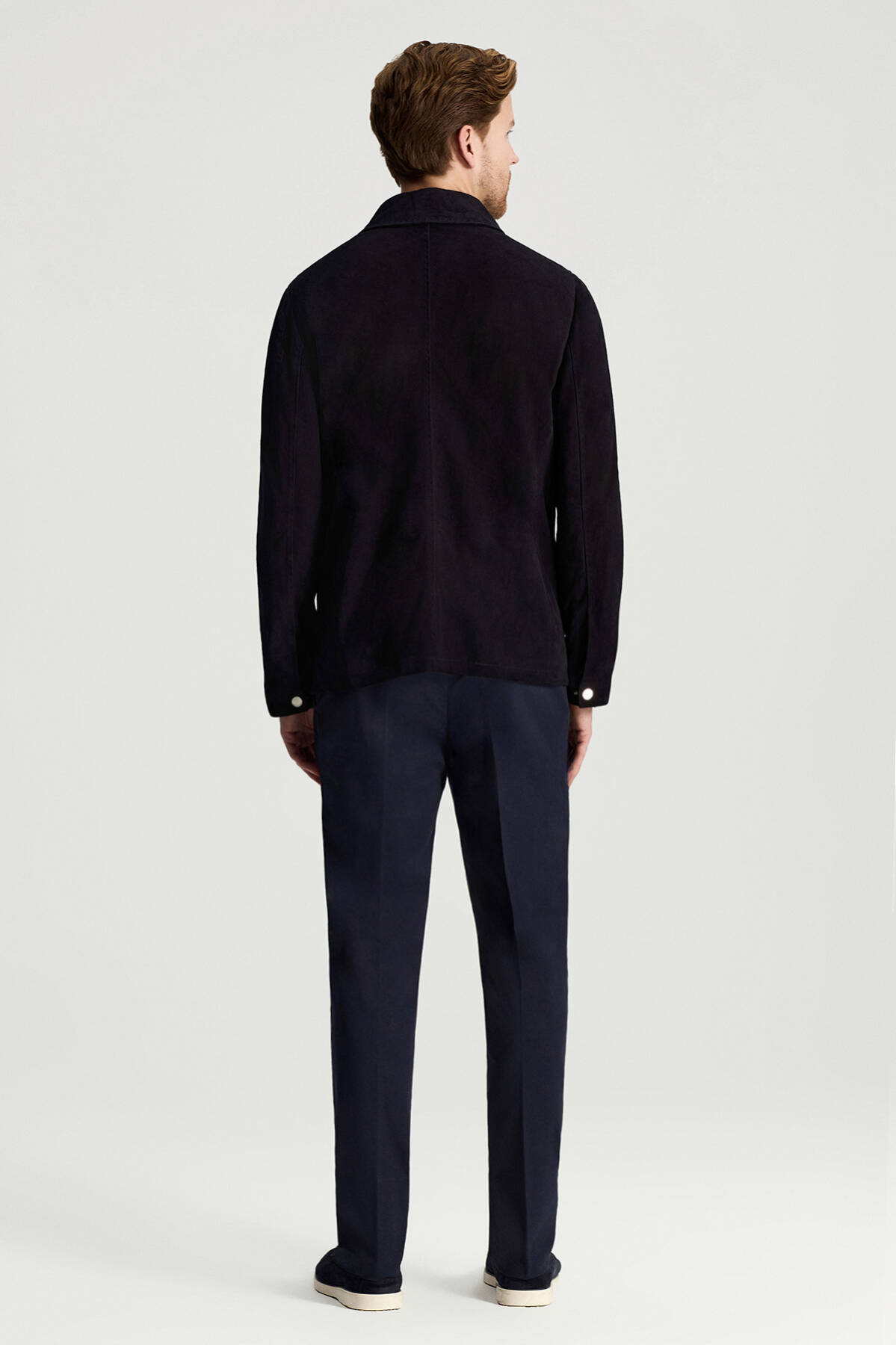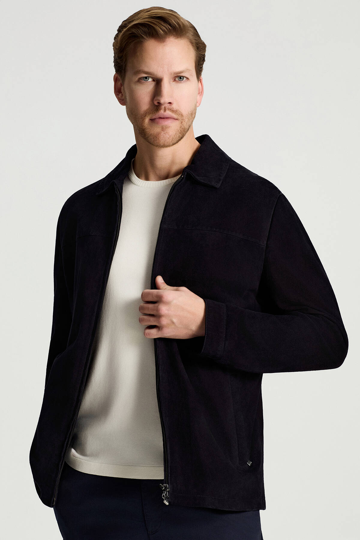 Doğal süetin yumuşak dokusuyla öne çıkan lacivert deri ceket, klasik stilin modern yorumu. Şık ve dayanıklı yapısıyla hem günlük hem özel anlarda rahatlıkla tercih edilir. Zamansız tasarımı, her kombine sofistike bir dokunuş katar.