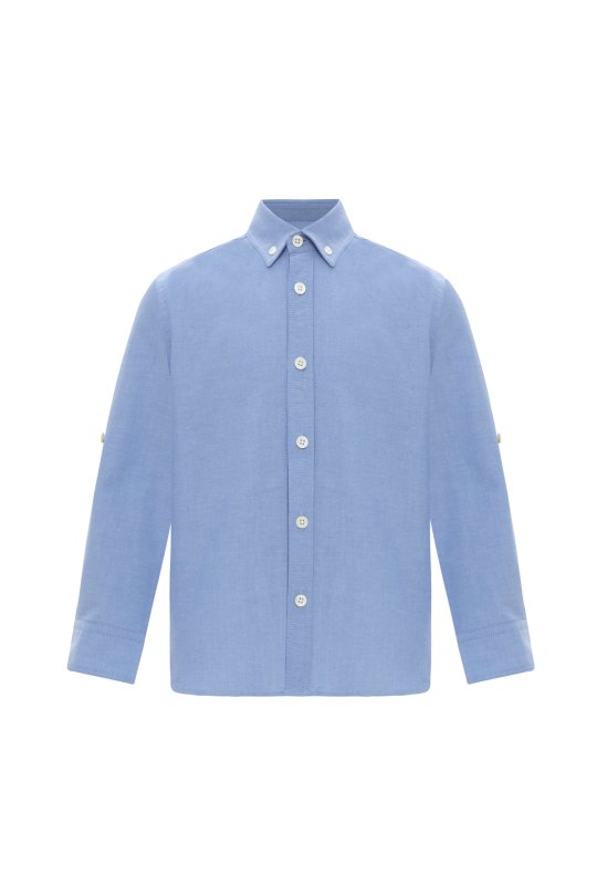Düğmeli Yaka Saf Pamuk Açık Mavi Çocuk Gömlek