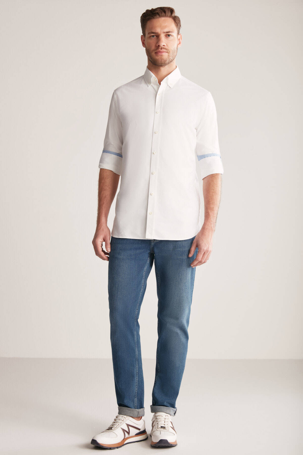 | Düğmeli Yaka, Kolları Katlanabilir Detaylı, Sedef Düğme, Nakış Logo |