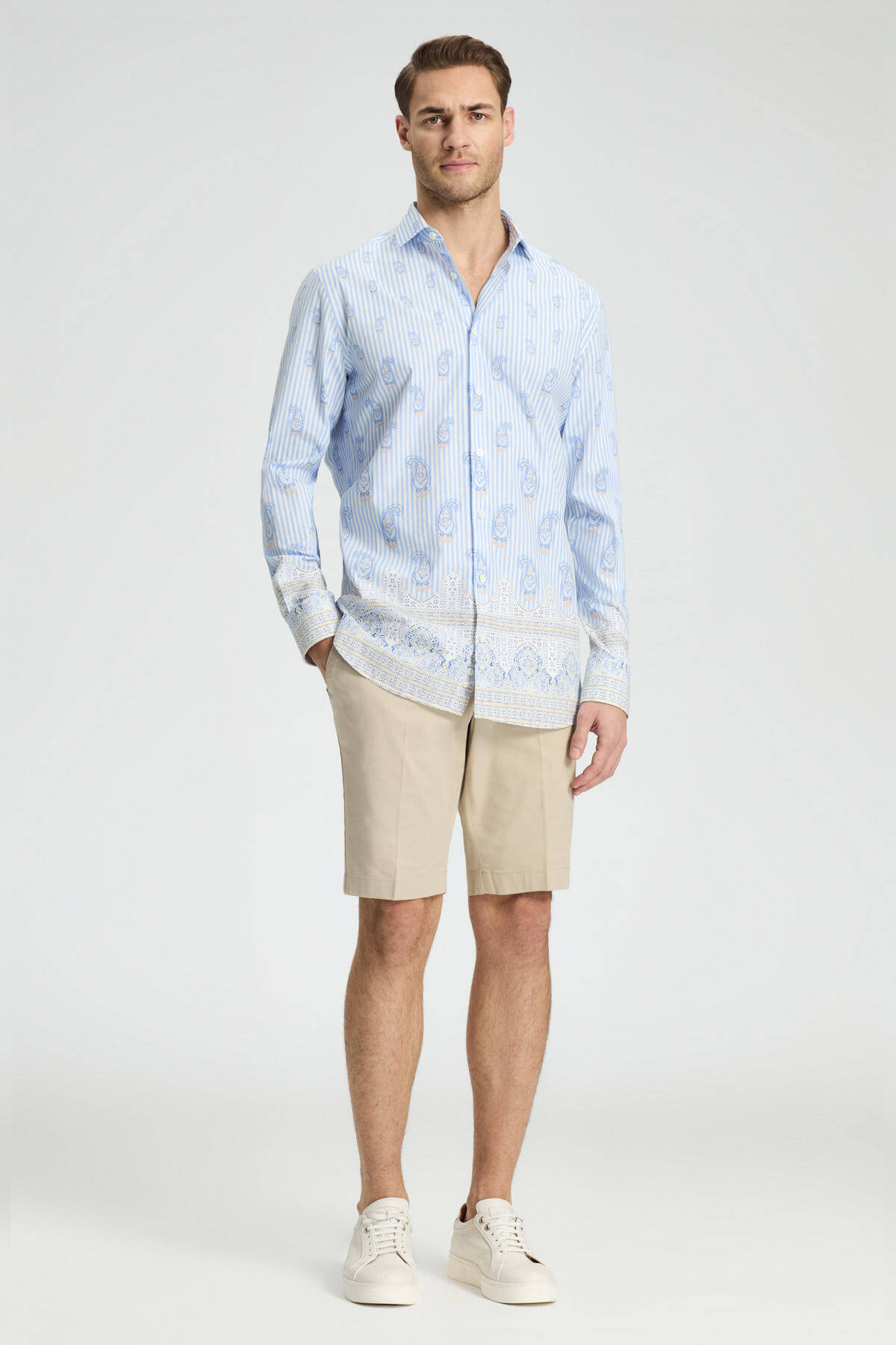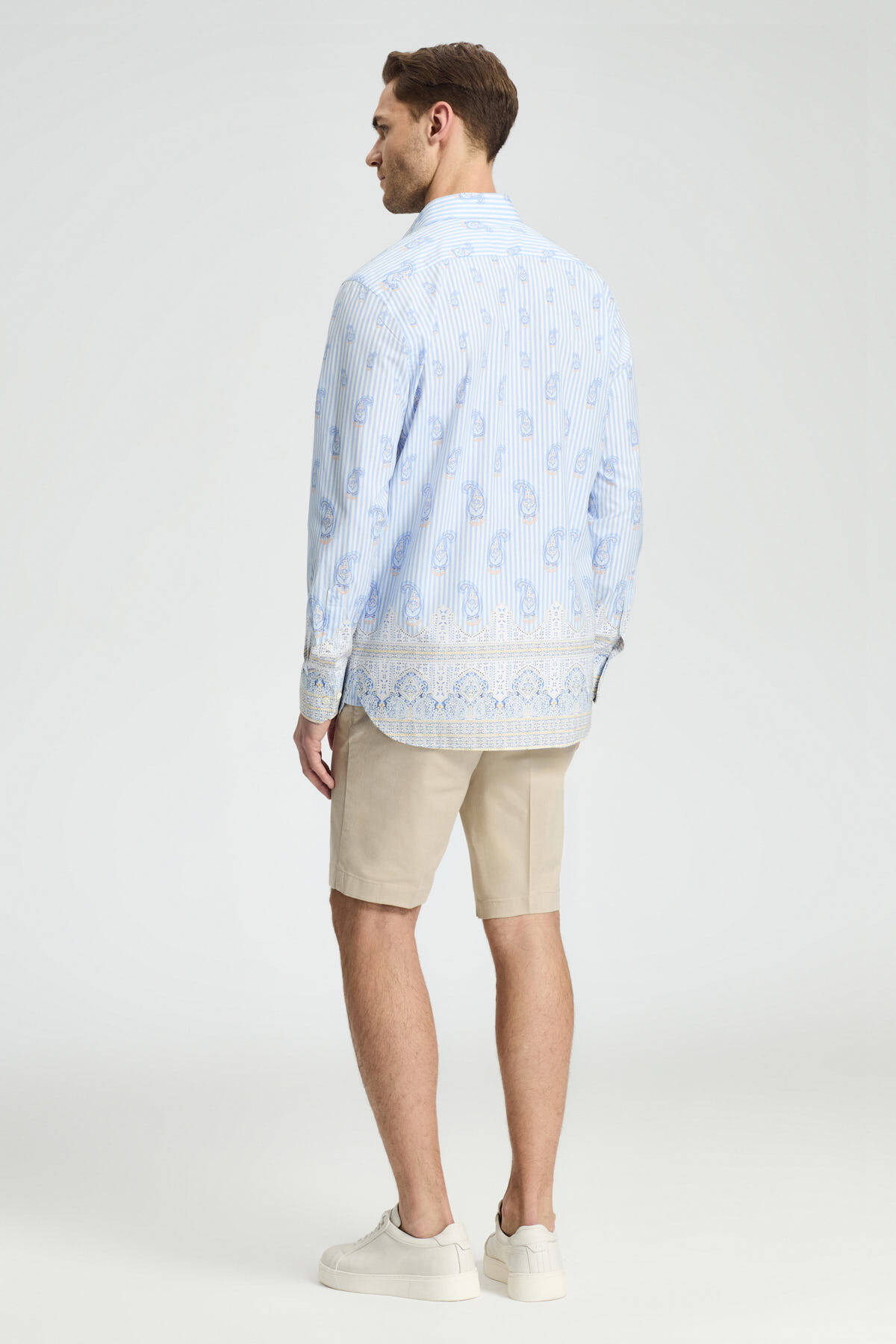 Paisley Desen İtalyan Yaka Pamuk Tencel Mavi Beyaz Gömlek