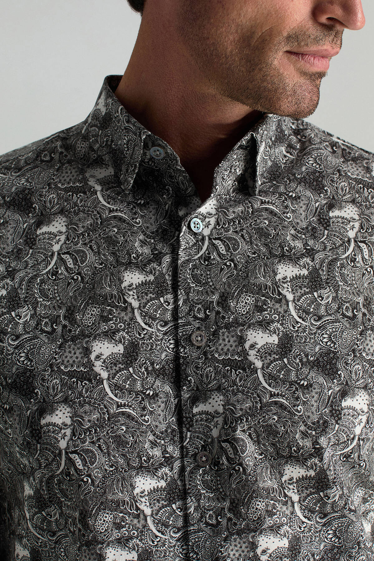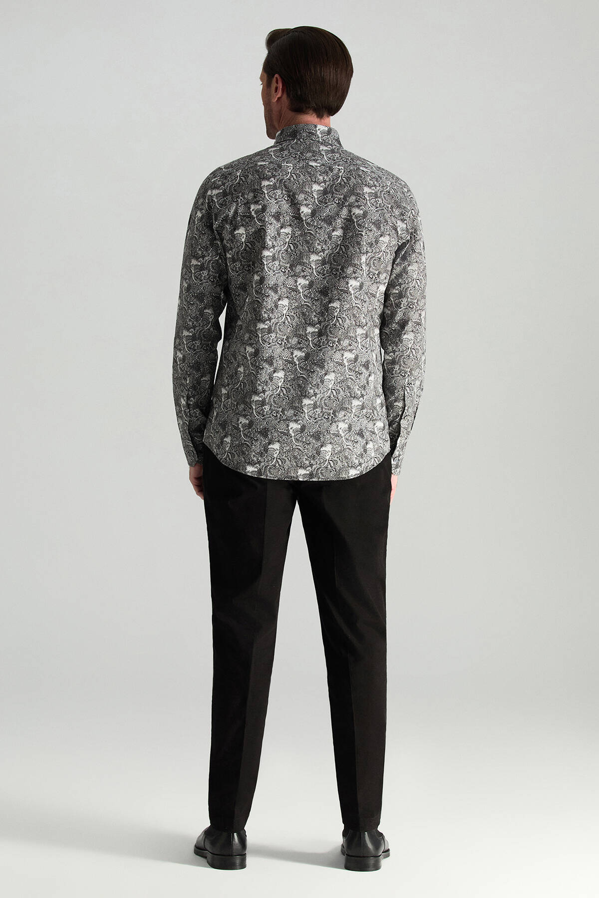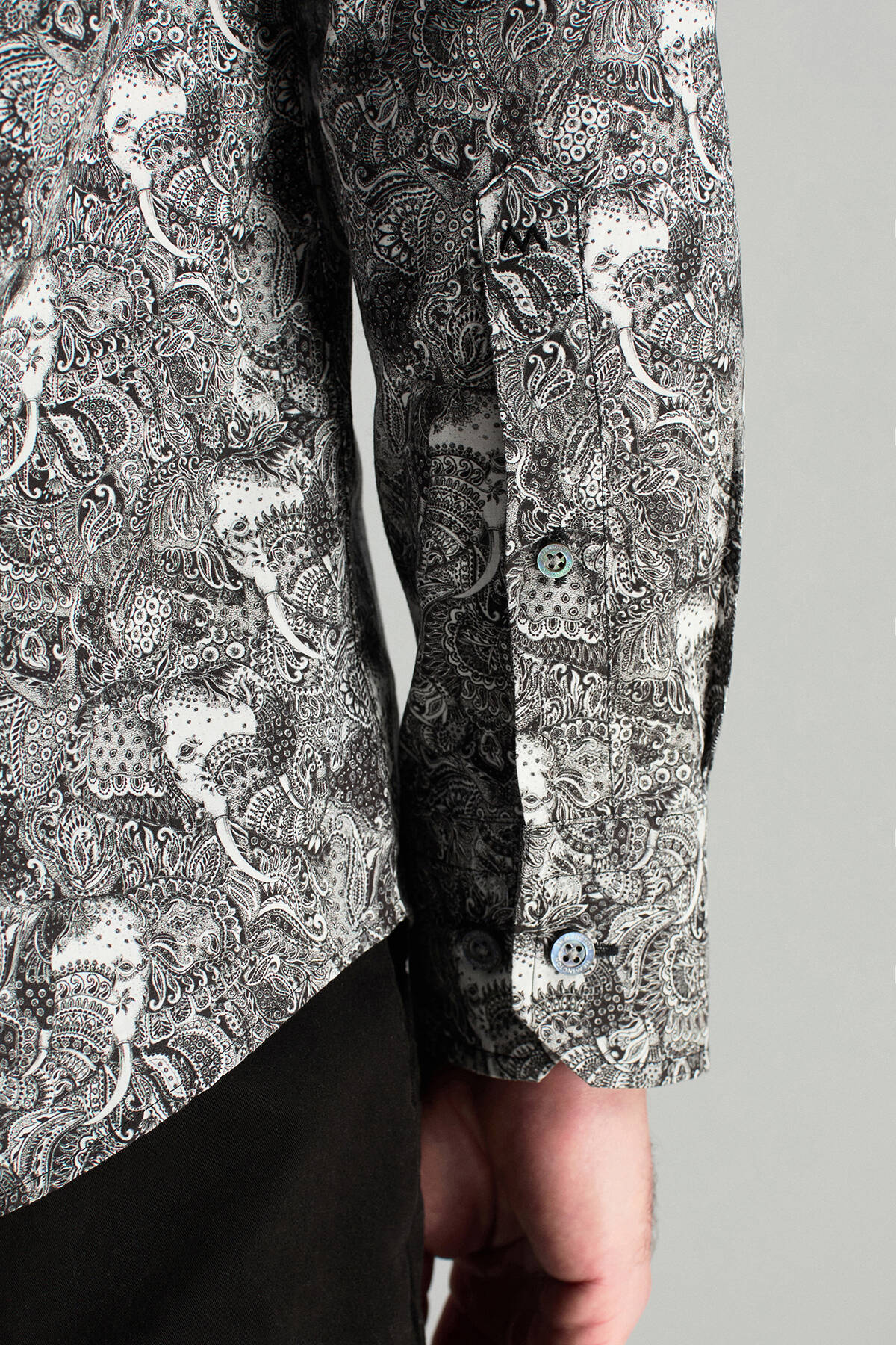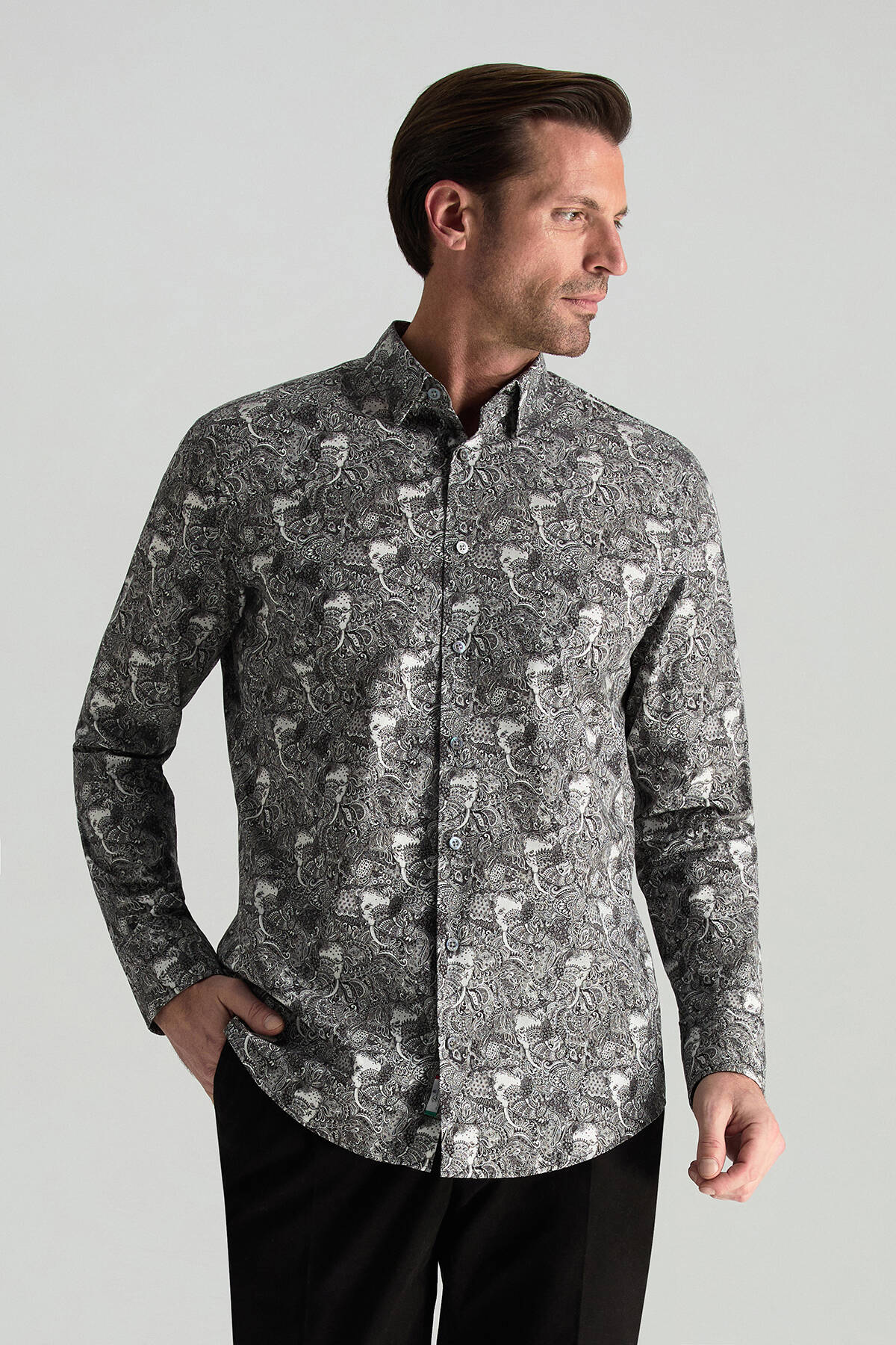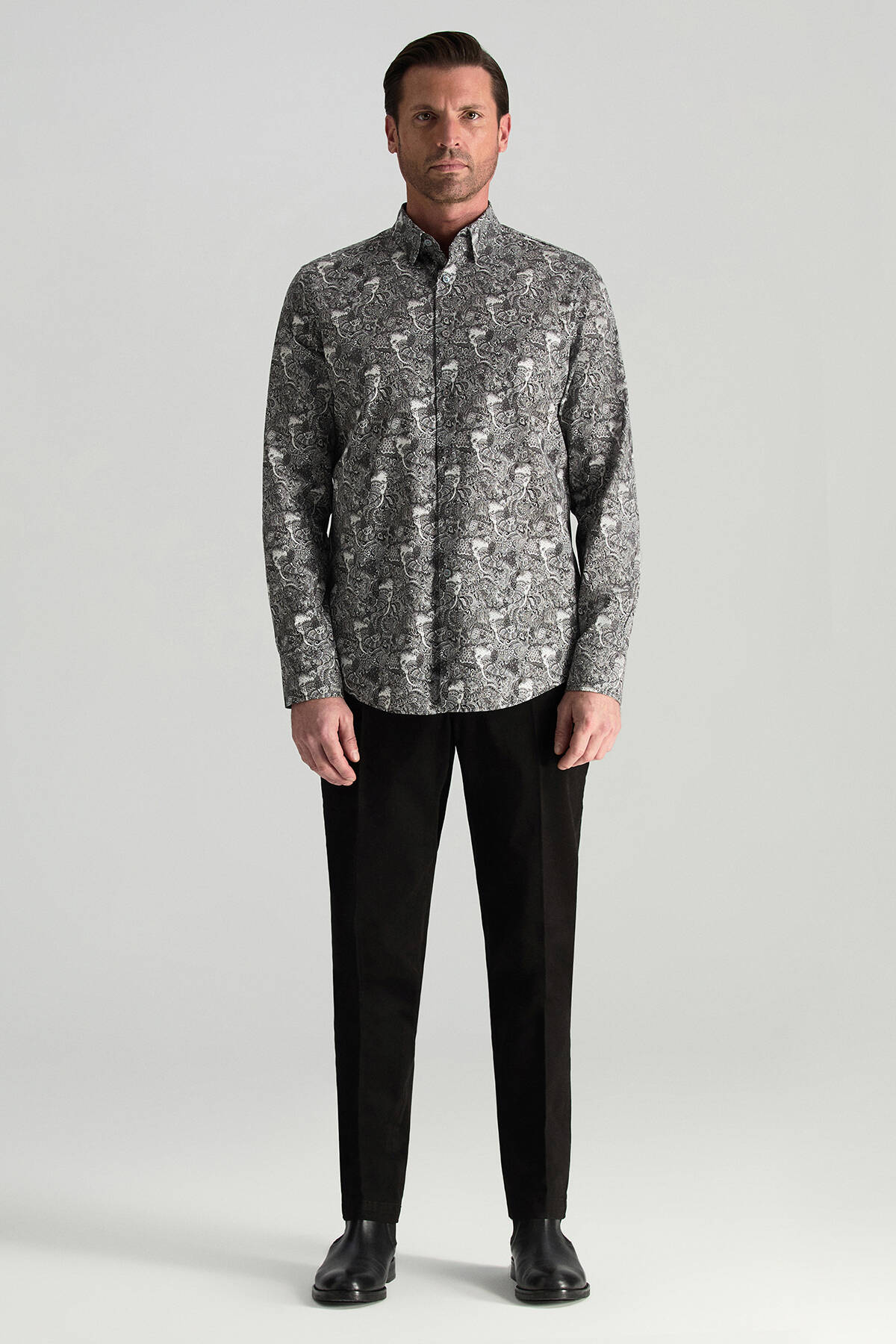 | Etnik Desenli, Klasik Yaka, Gizli Düğme |