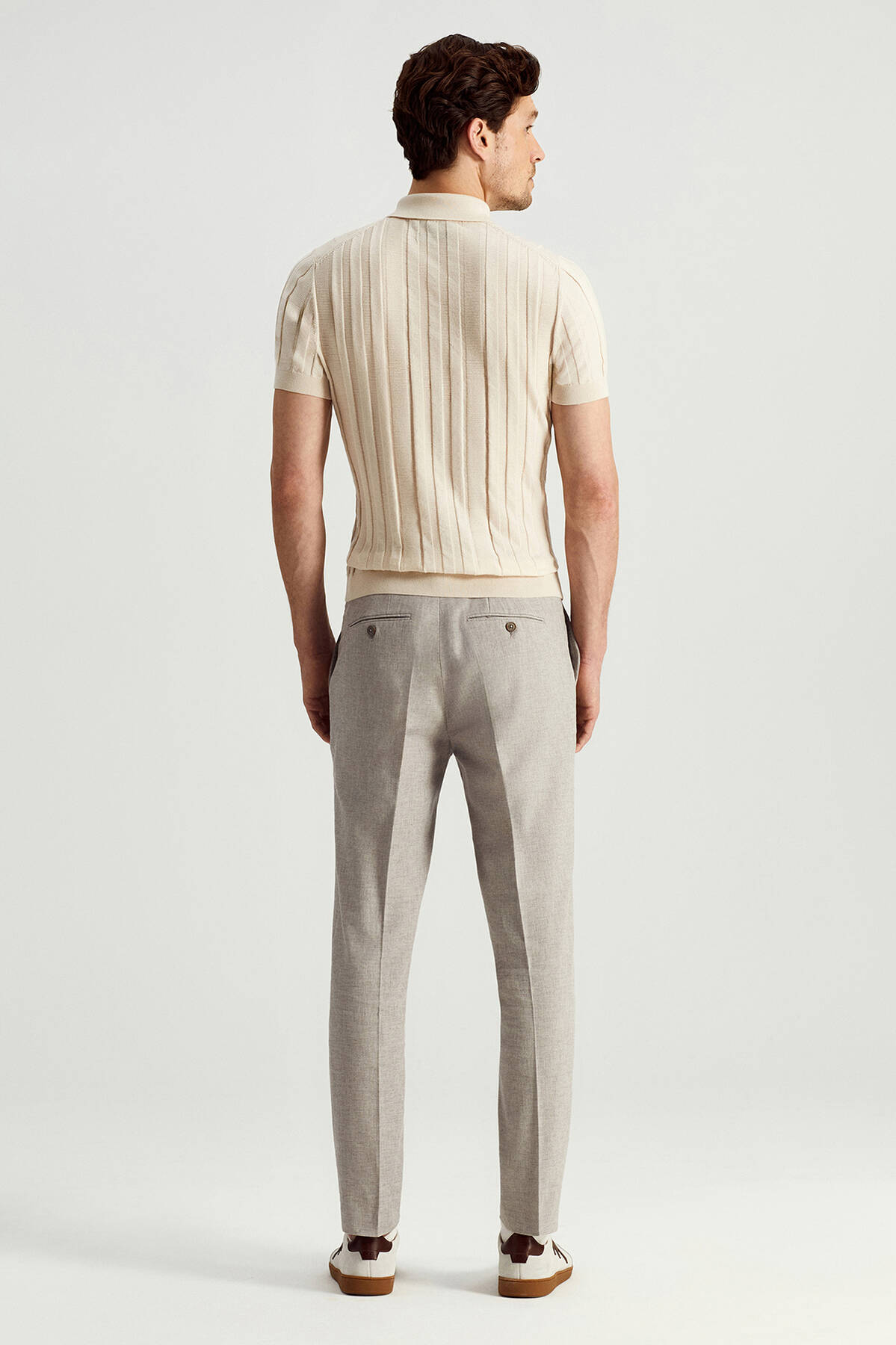 Extrafine Merino Yün-Pamuk Karışım Üç Düğme Krem Triko Polo