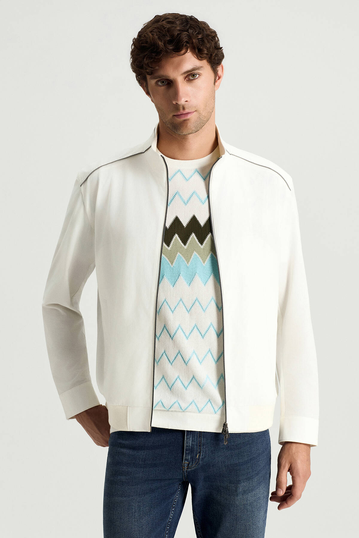 Fermuarlı Yazlık Beyaz Mont