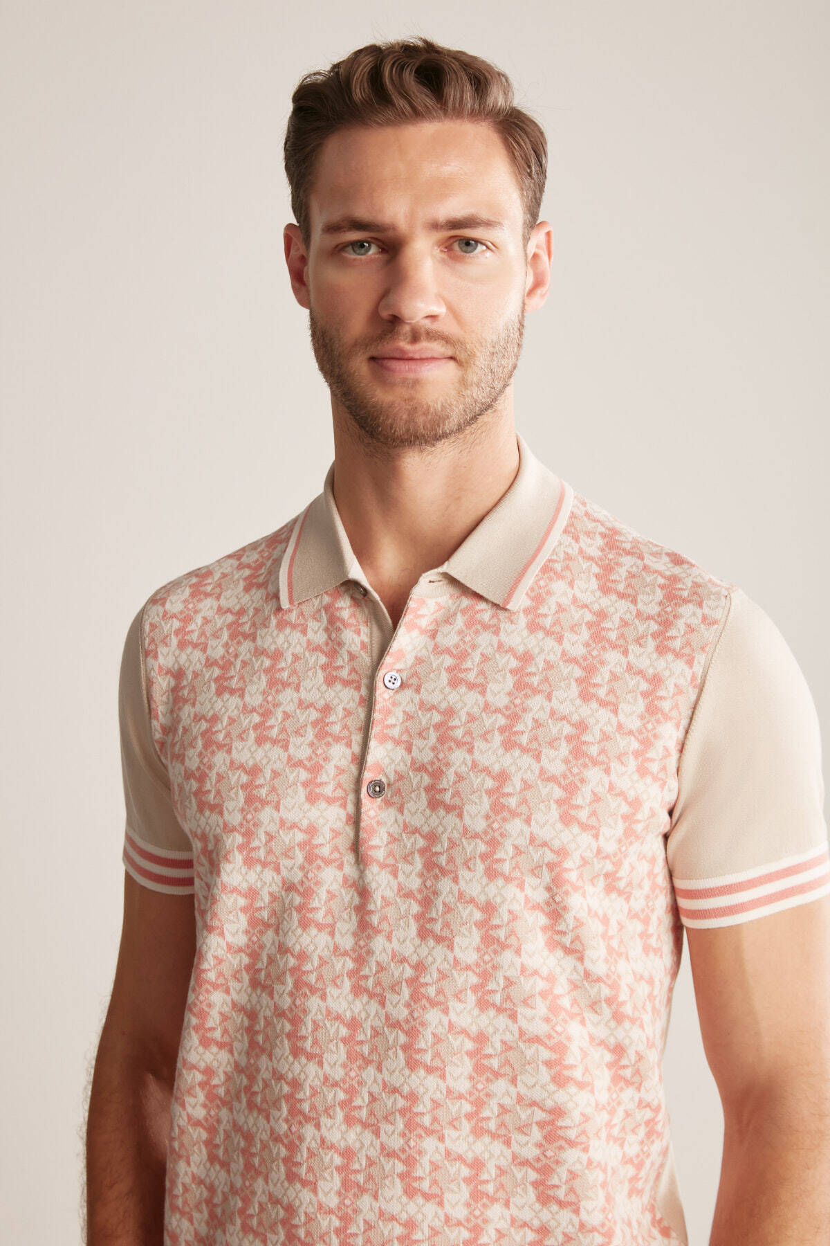 İpek Pamuk Karışım Desen Kum Rengi Triko Polo