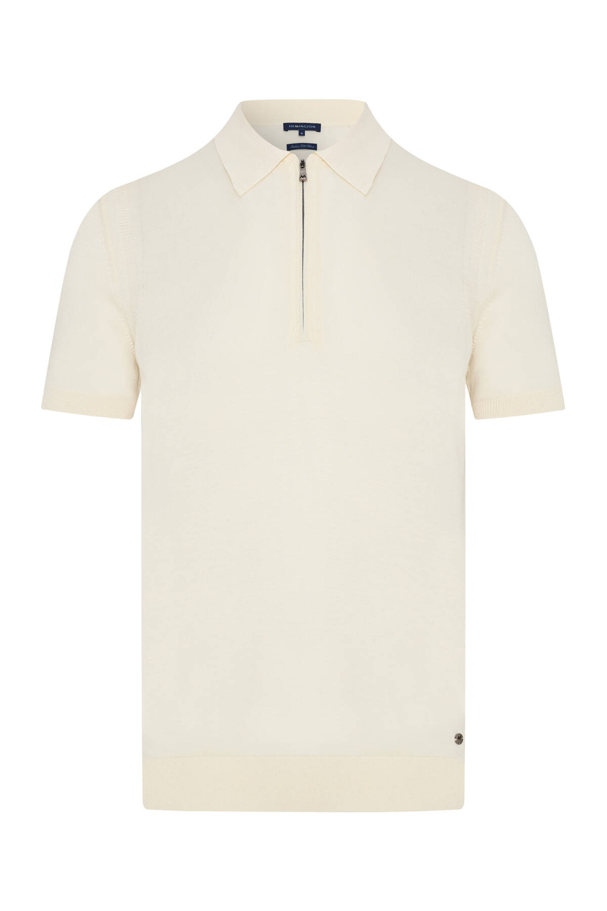 İpek Pamuk Karışım Fermuar Detaylı Beyaz Triko Polo