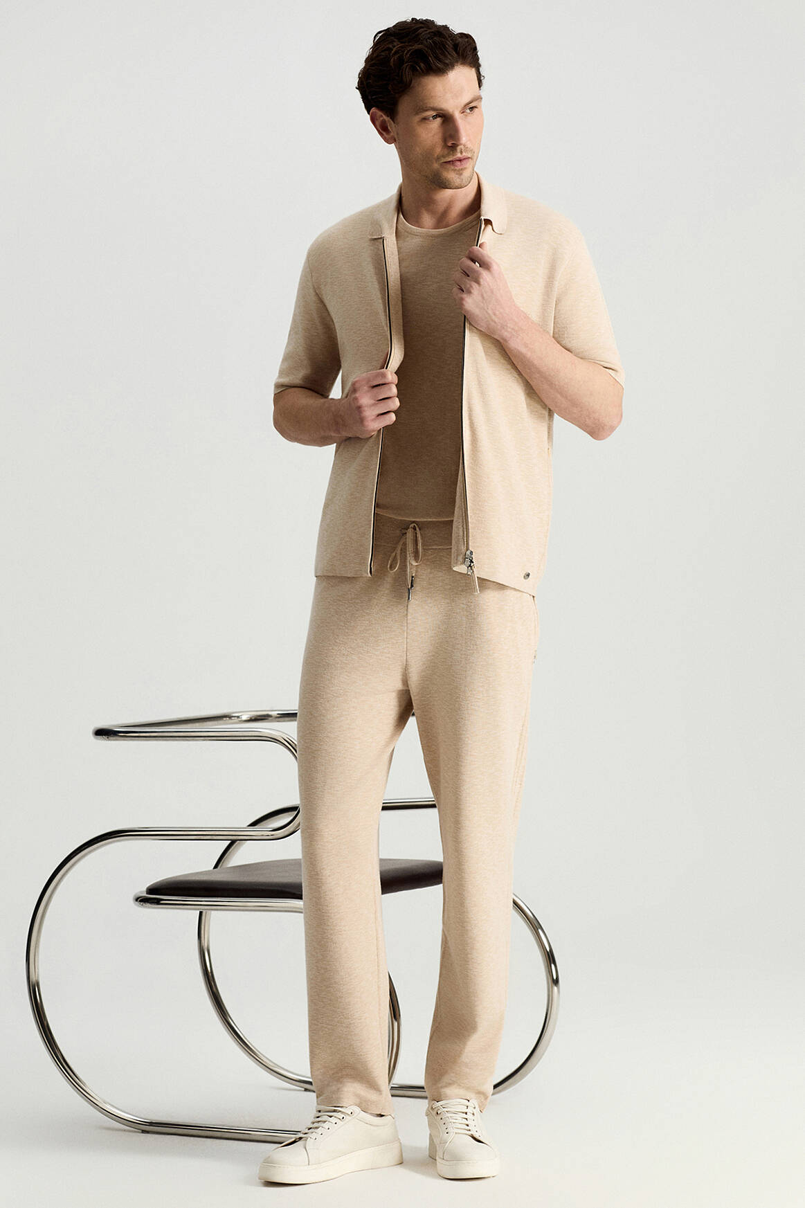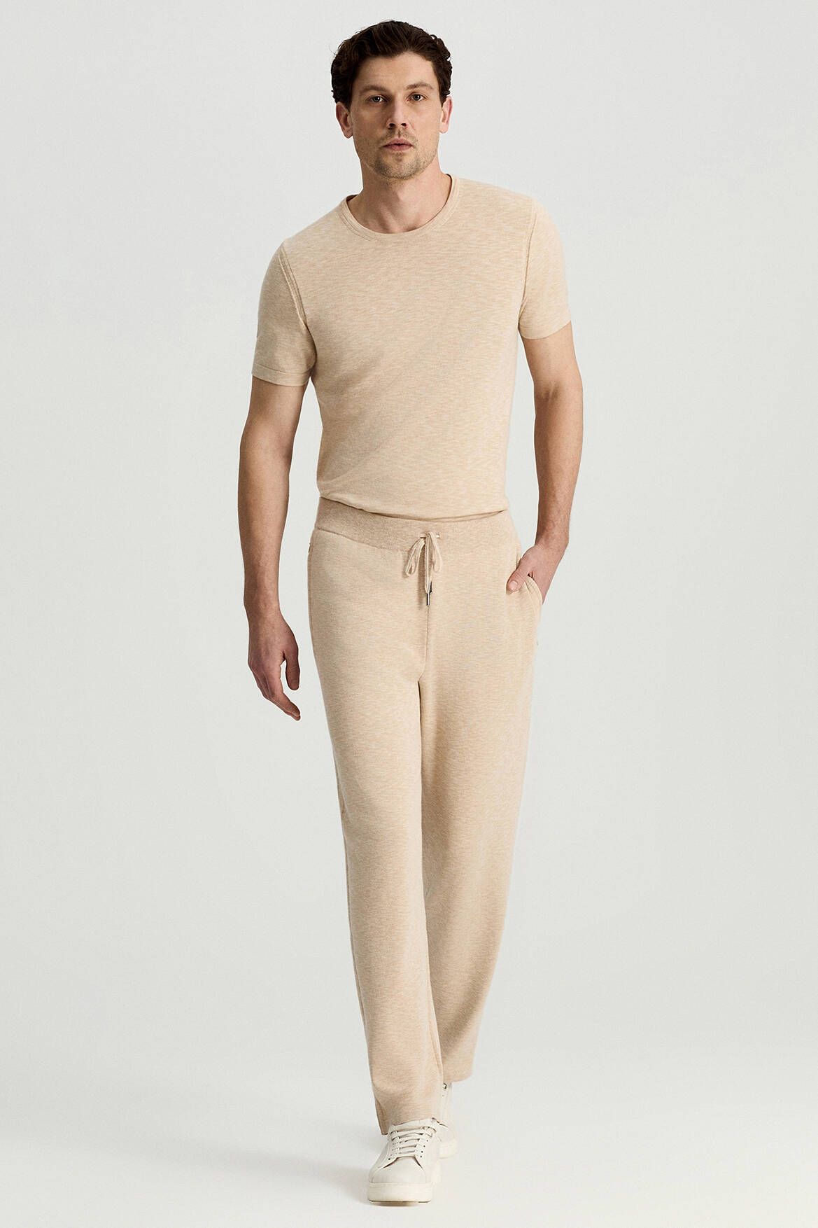 İtalyan İplik Bej Triko Lounge Pantolon