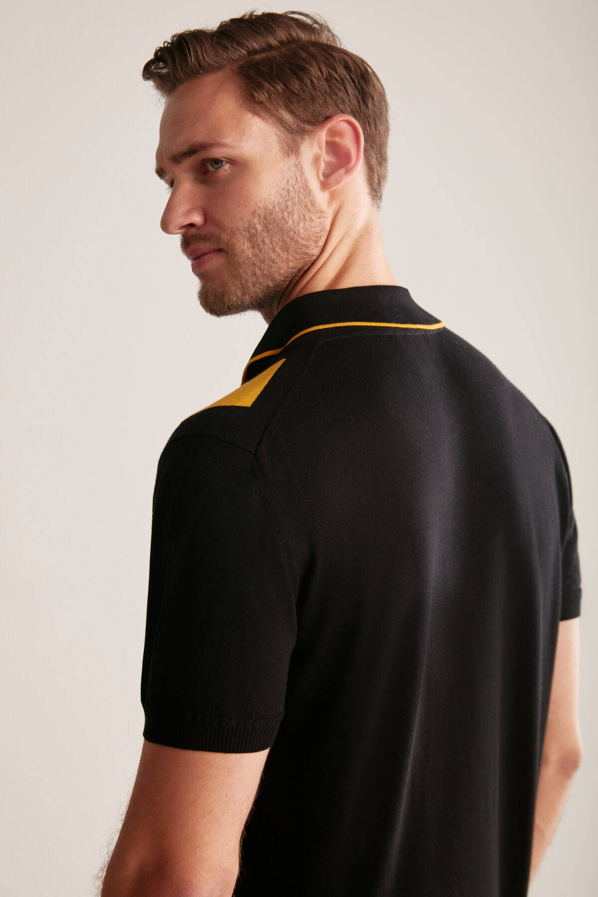 Kare Desen Giza Pamuk Siyah Triko Polo