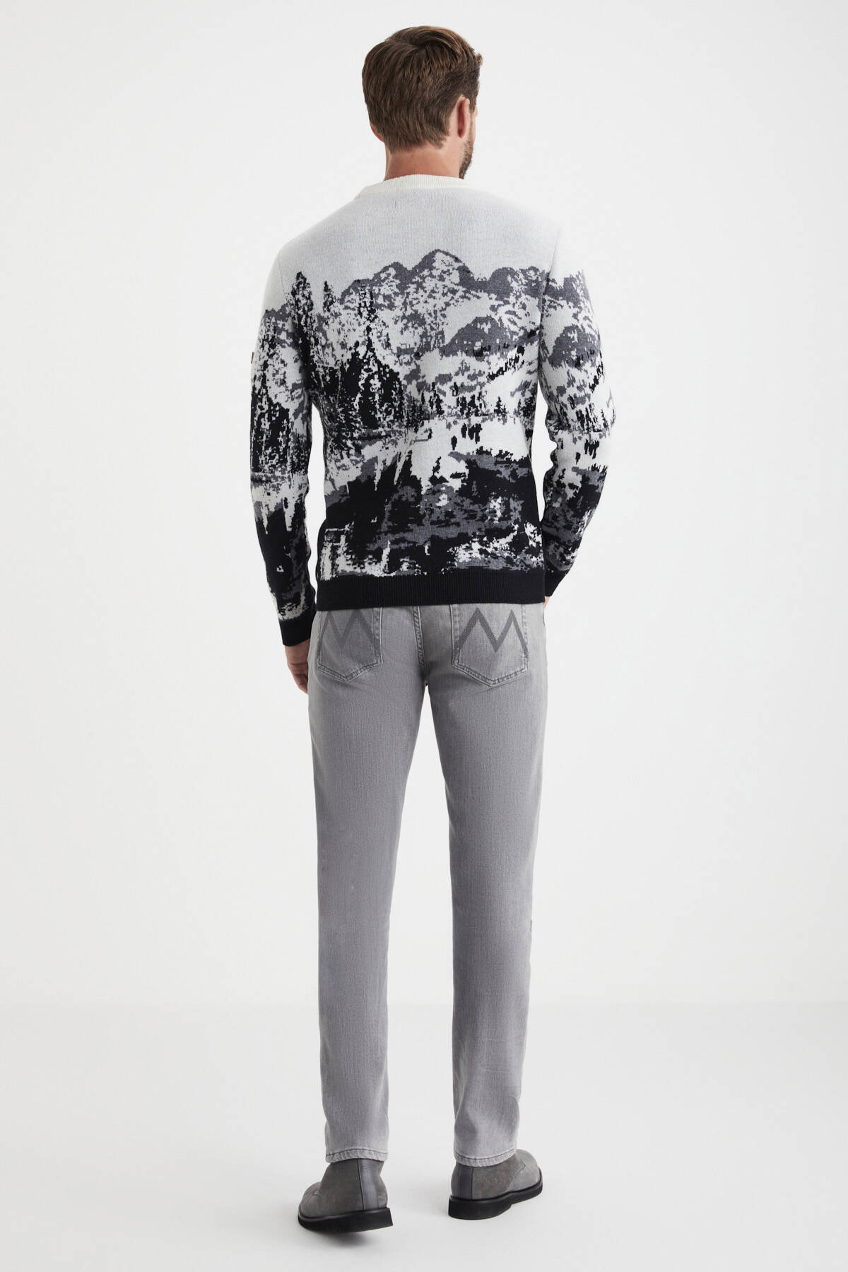 Kaşmir Merino Karışım Dağ Desen Siyah Kazak