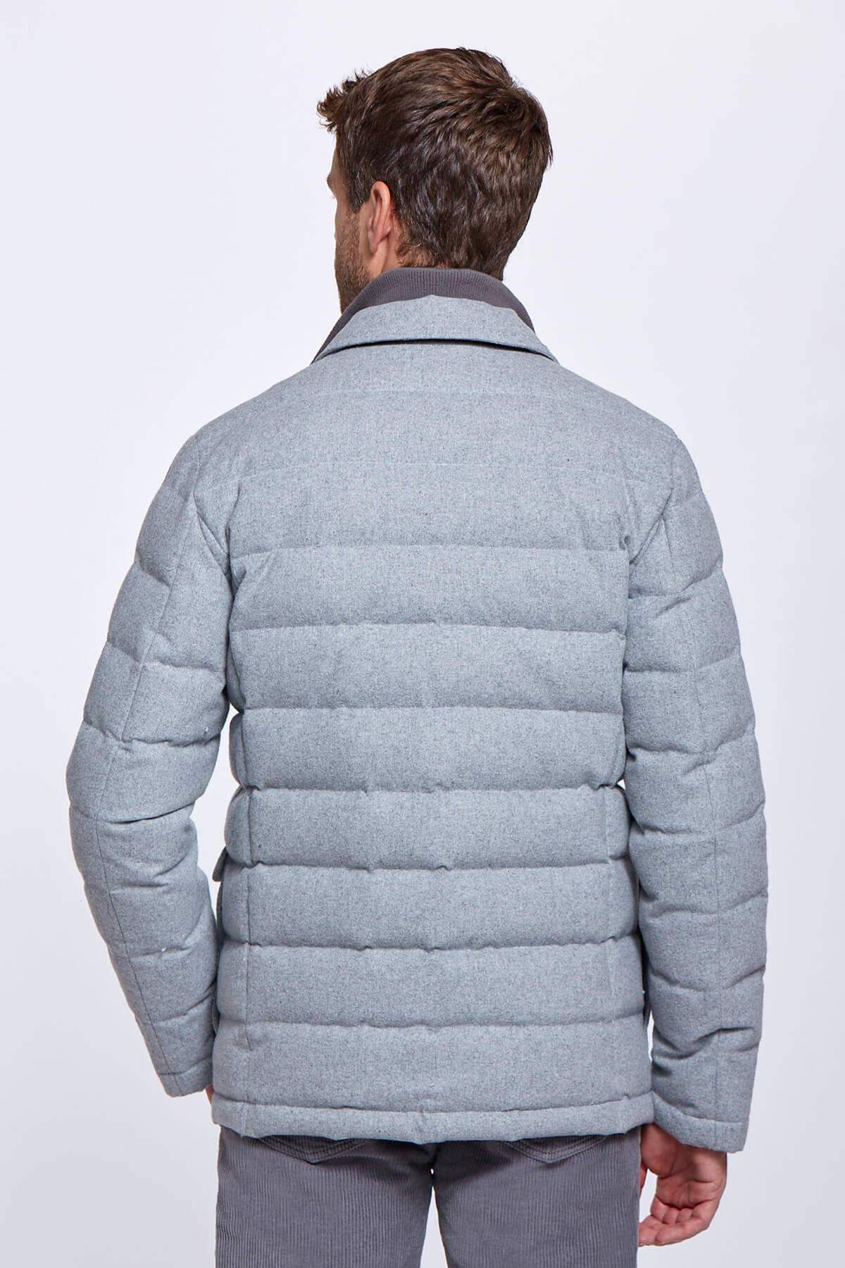 Kaz Tüyü Dolgulu Açık Gri Mont