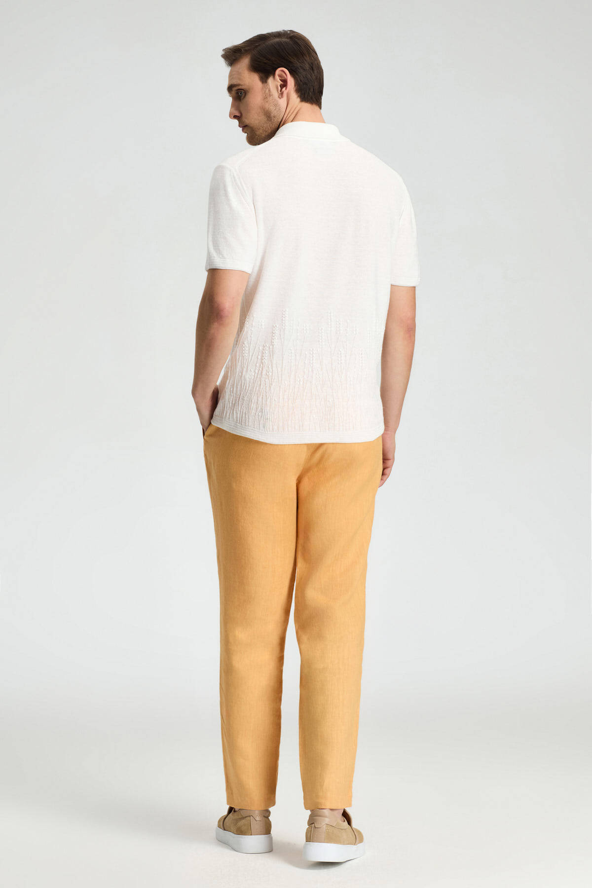 Keten Pamuk Karışım Kırık Beyaz Desen Triko Polo