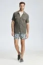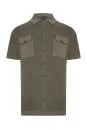 Keten Pamuk Karışım Kısa Kollu Haki Triko Gömlek
