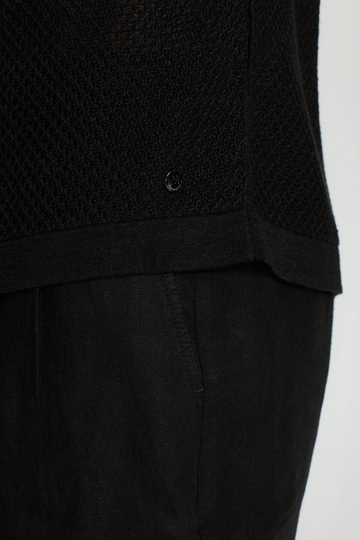 Keten Pamuk Karışım Kısa Kollu Siyah Triko Gömlek