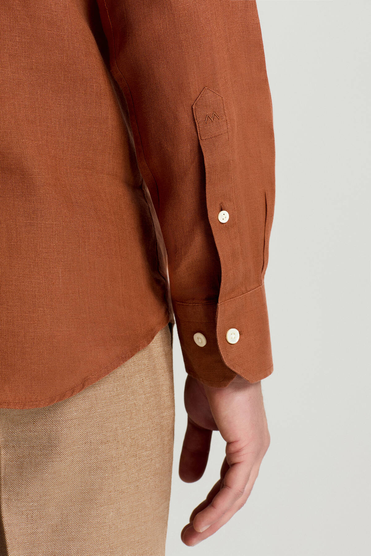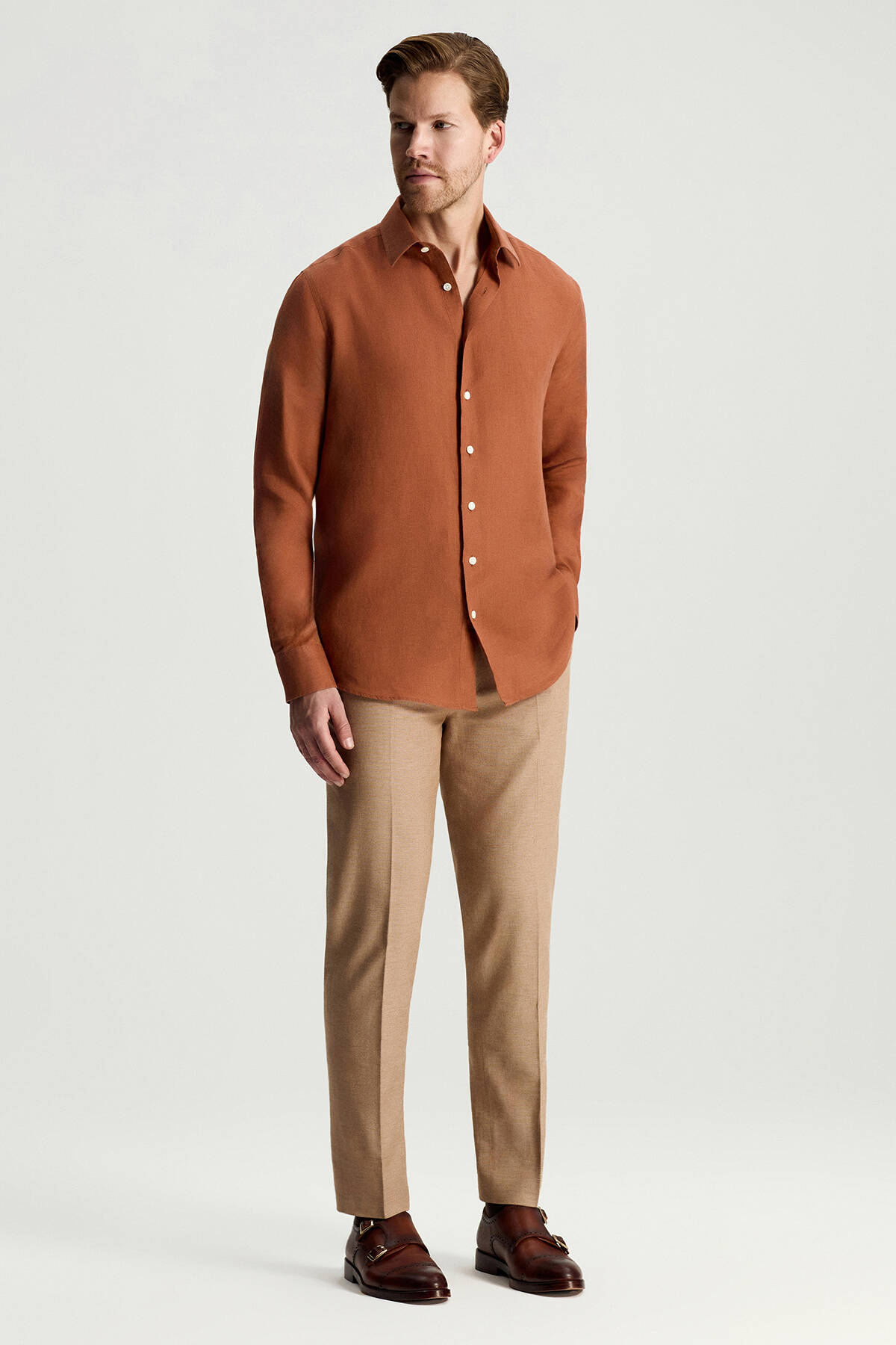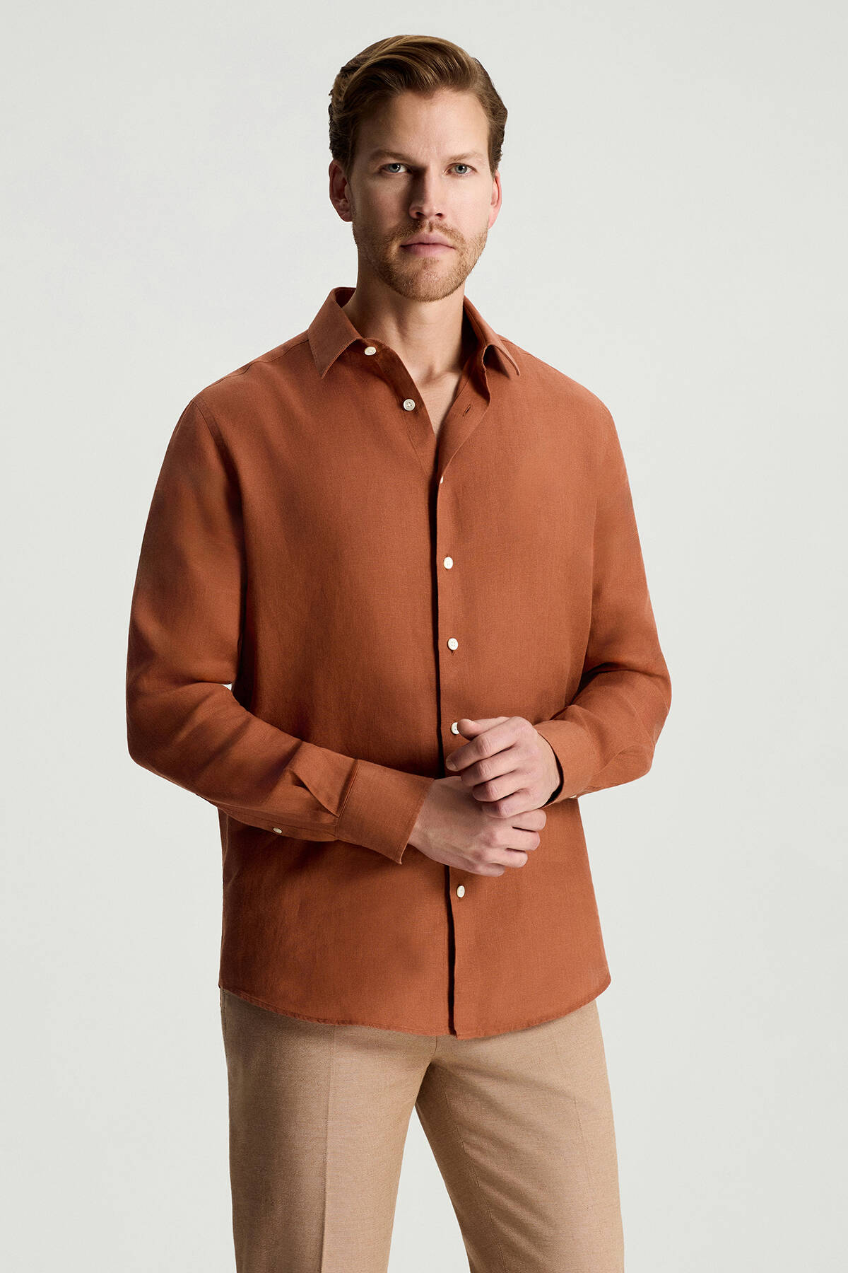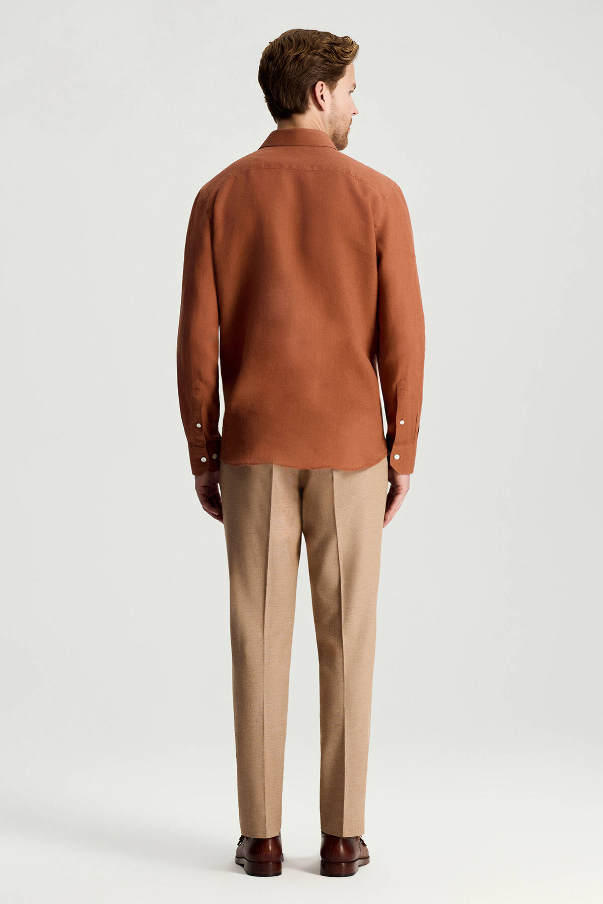 Kiremit Rengi Saf Keten Spor Gömlek