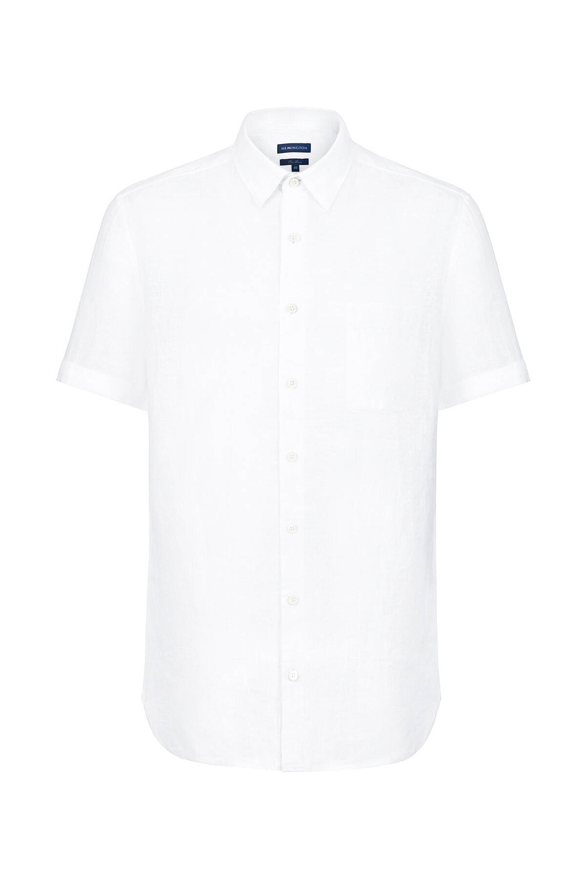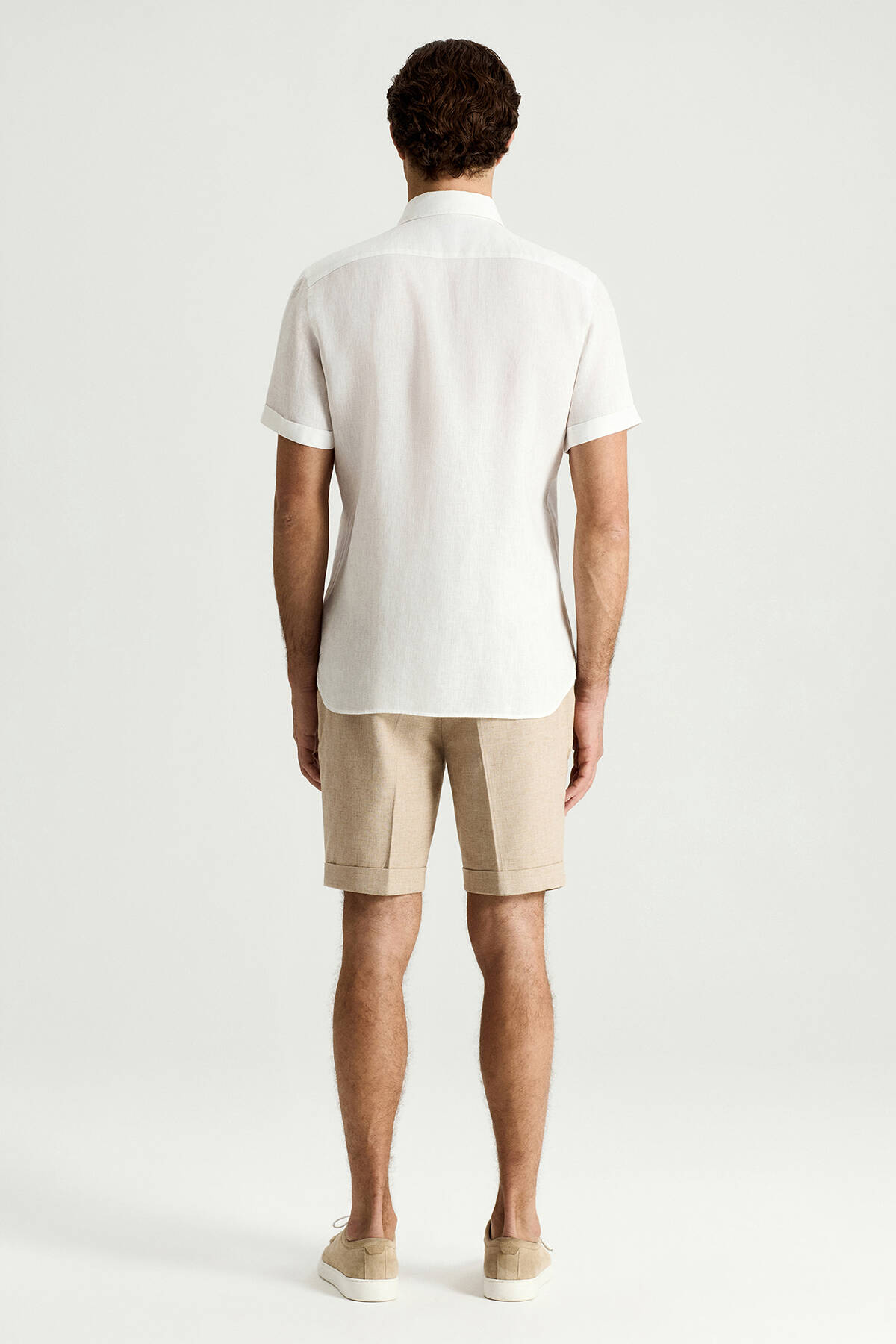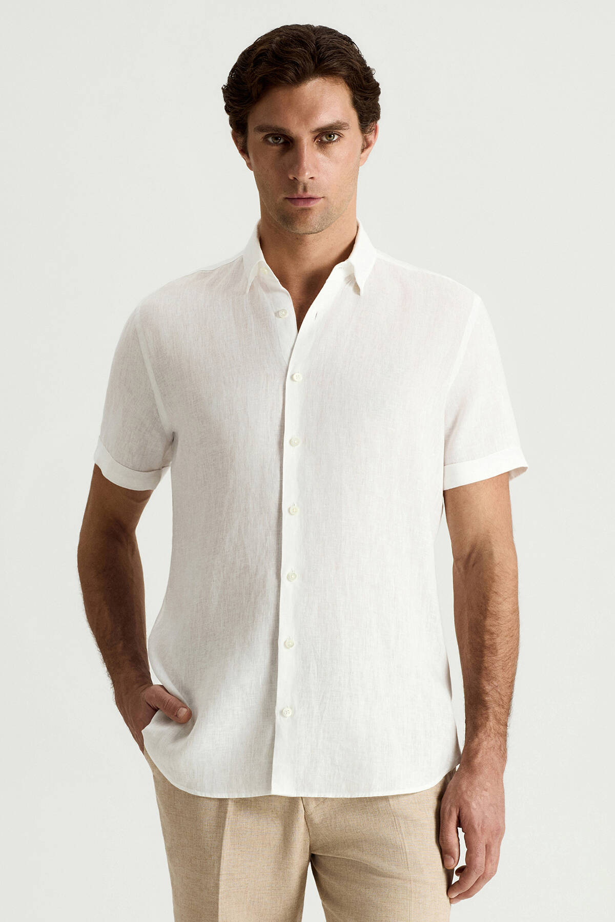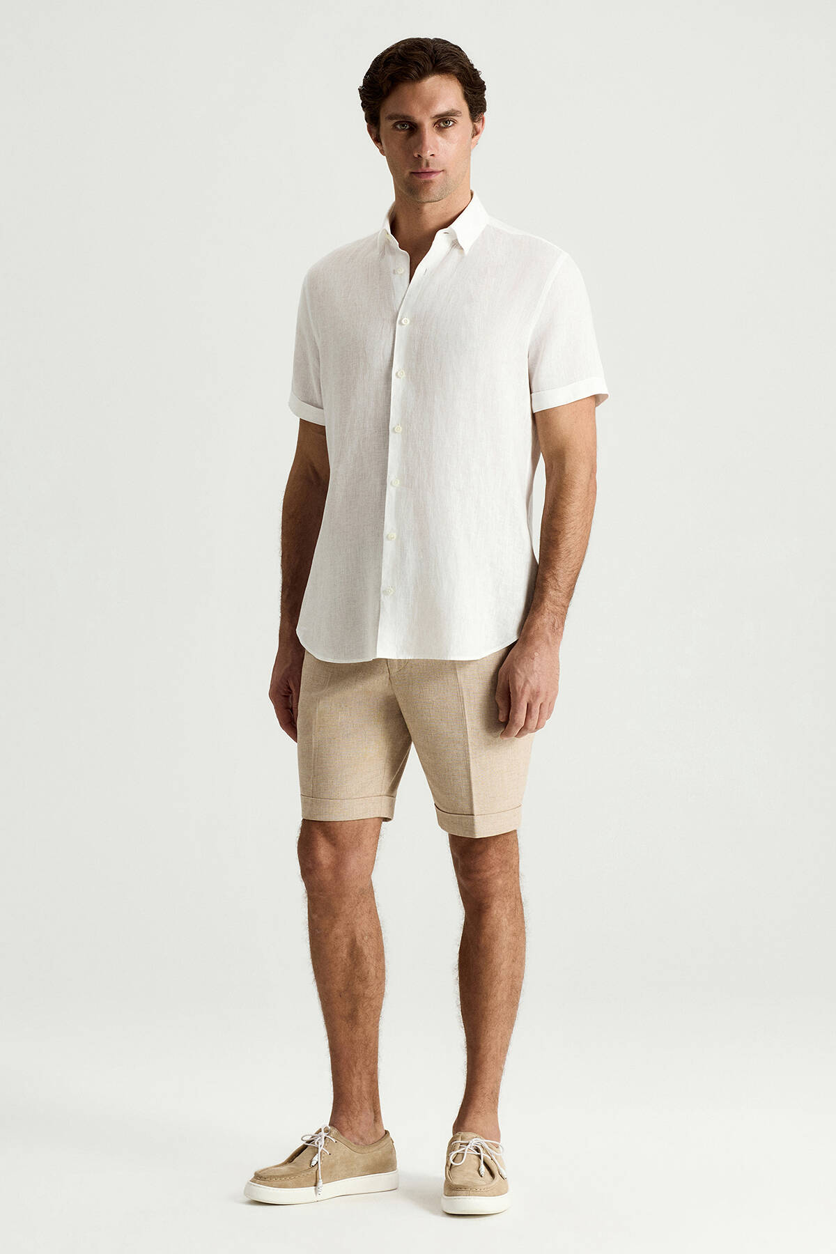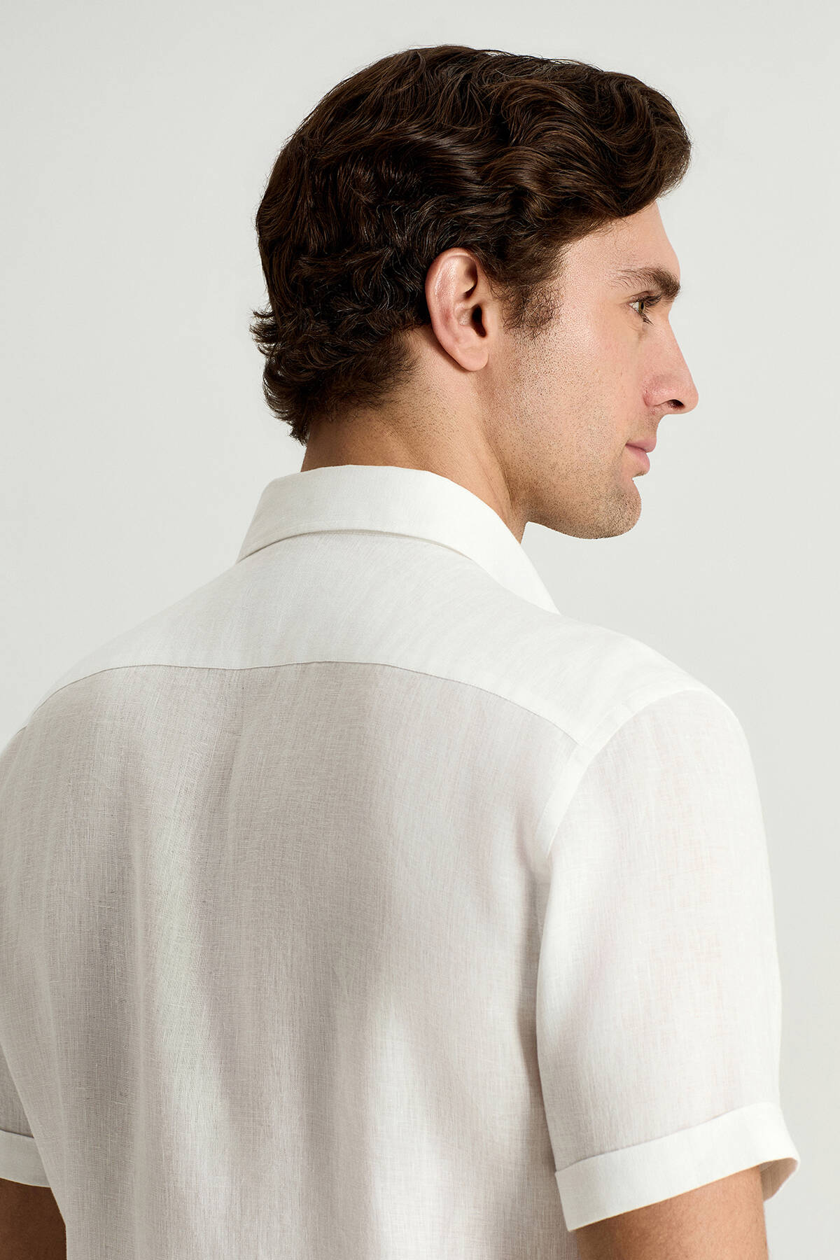 Kısa Kollu Saf Keten Beyaz Gömlek