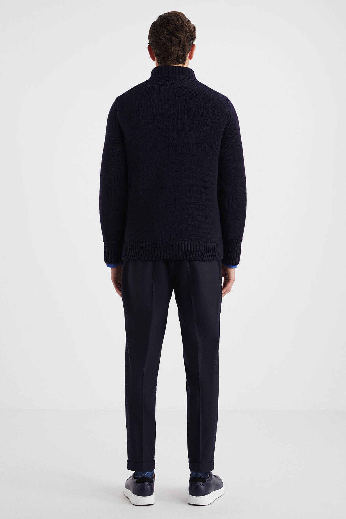 Lambswool Yün Boğazlı Lacivert Triko Kazak - Thumbnail