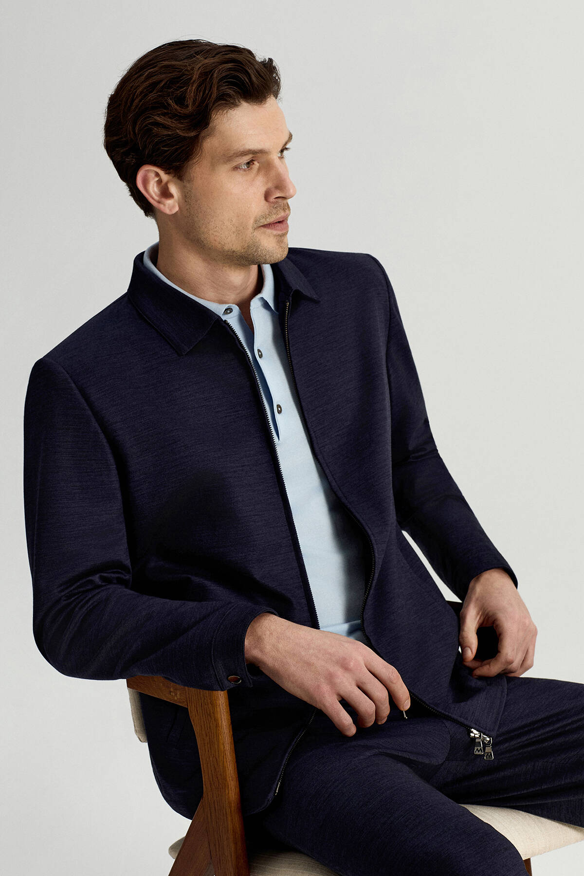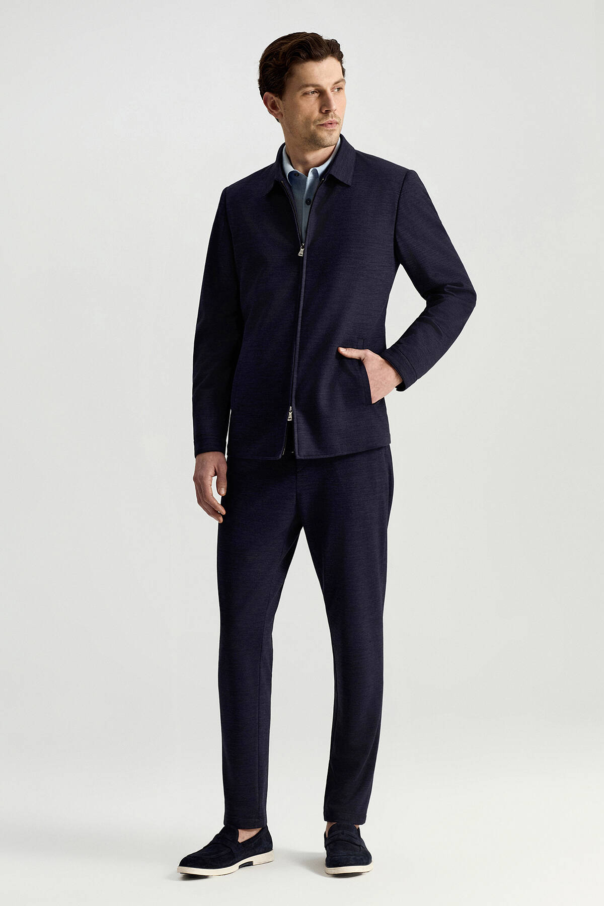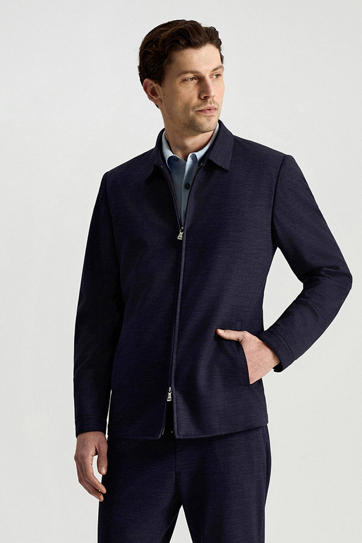 Lyocell Kumaş Fermuarlı Lacivert Spor Ceket