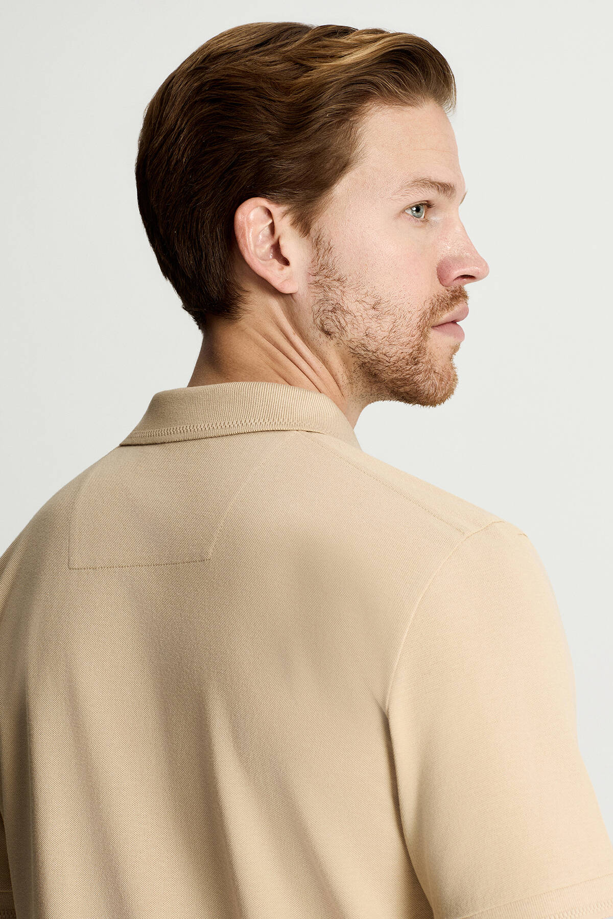 Lyocell Pamuk Kumaş Bej Polo Yaka T-Shirt