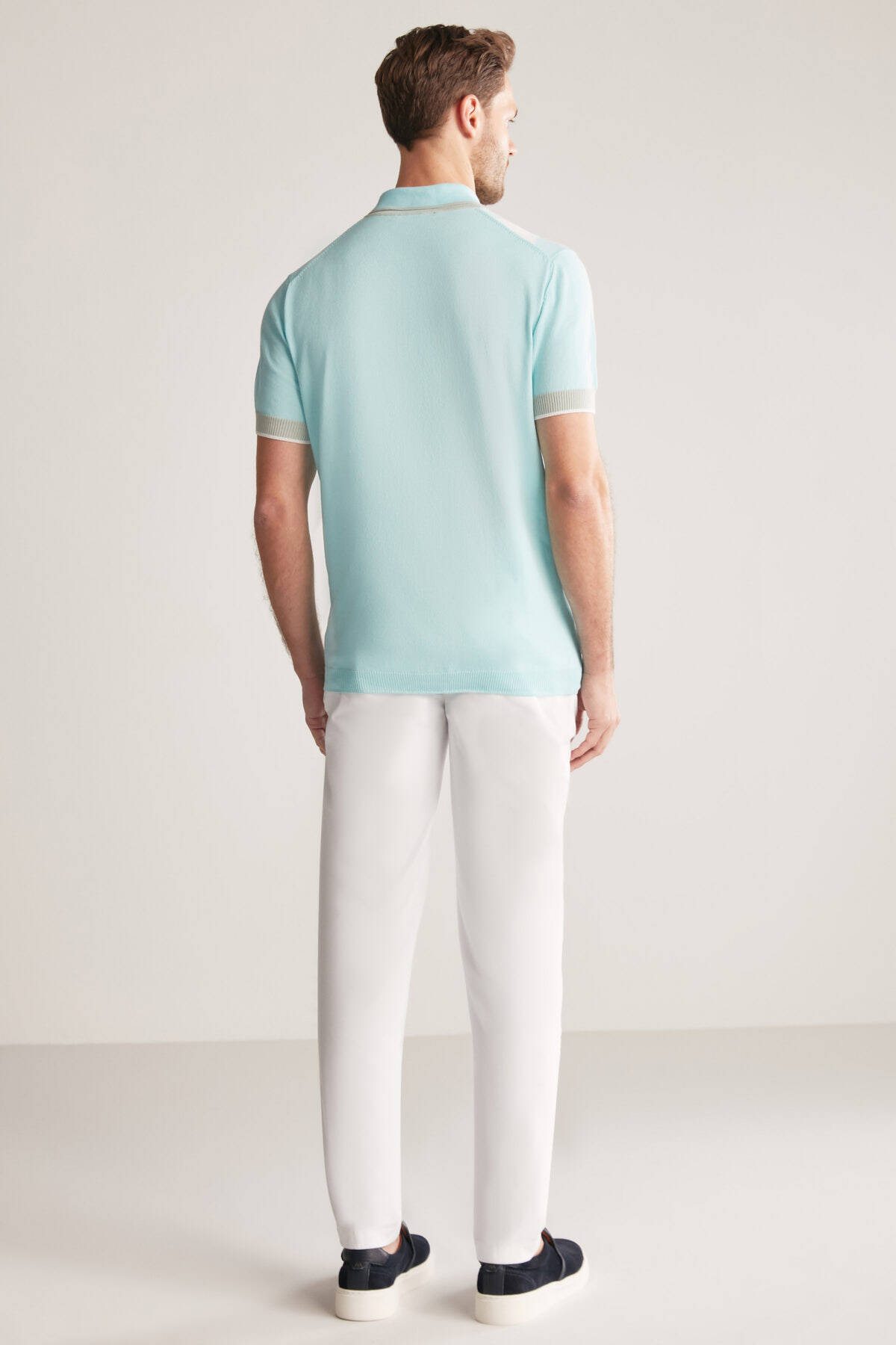 Bir Hemington klasiği olan baklava desenli triko polo, yeni sezon renkleri ile Hemington erkeklerinin gözde parçalarından olmaya devam ediyor. Açık tonlardaki mavi-yeşil renk kombinasyonları ile yazlık erkek kombinlerine çok yakışan triko polo, sürdürülebilir moda ilkelerine uygun olarak saf Ege pamuğunun konforunu sunuyor.