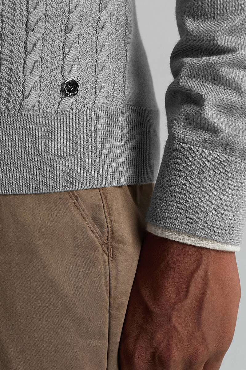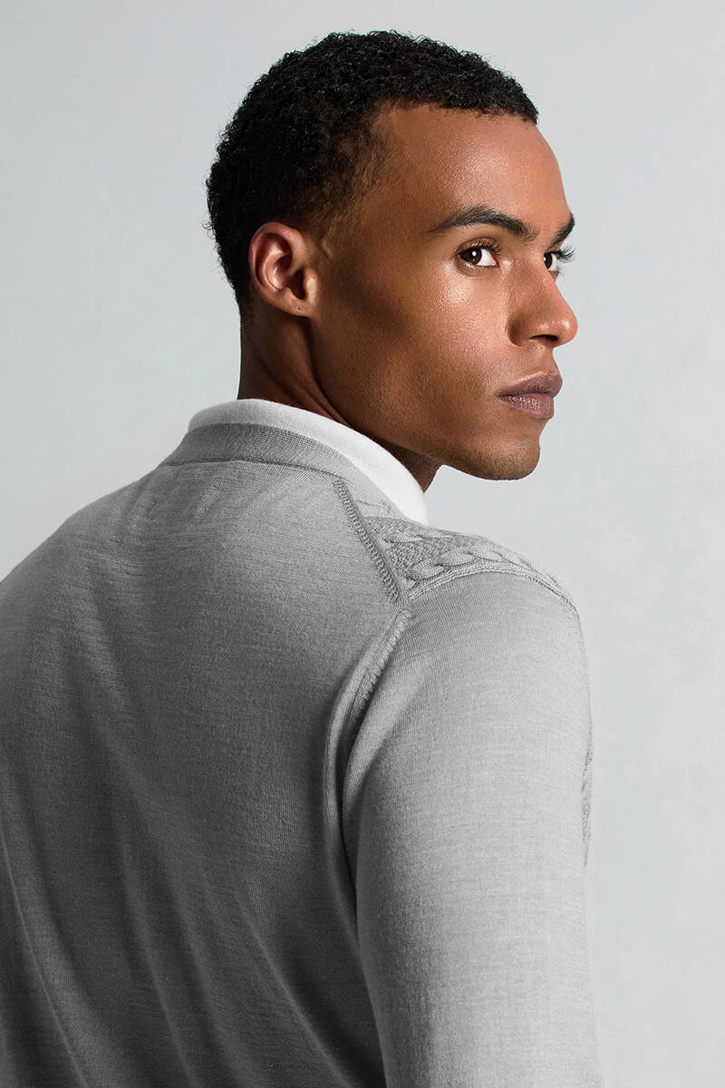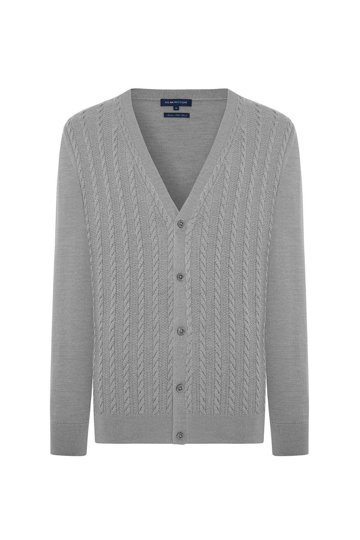 Merino Yün İpek Karışım Örgü Desenli Açık Gri Hırka