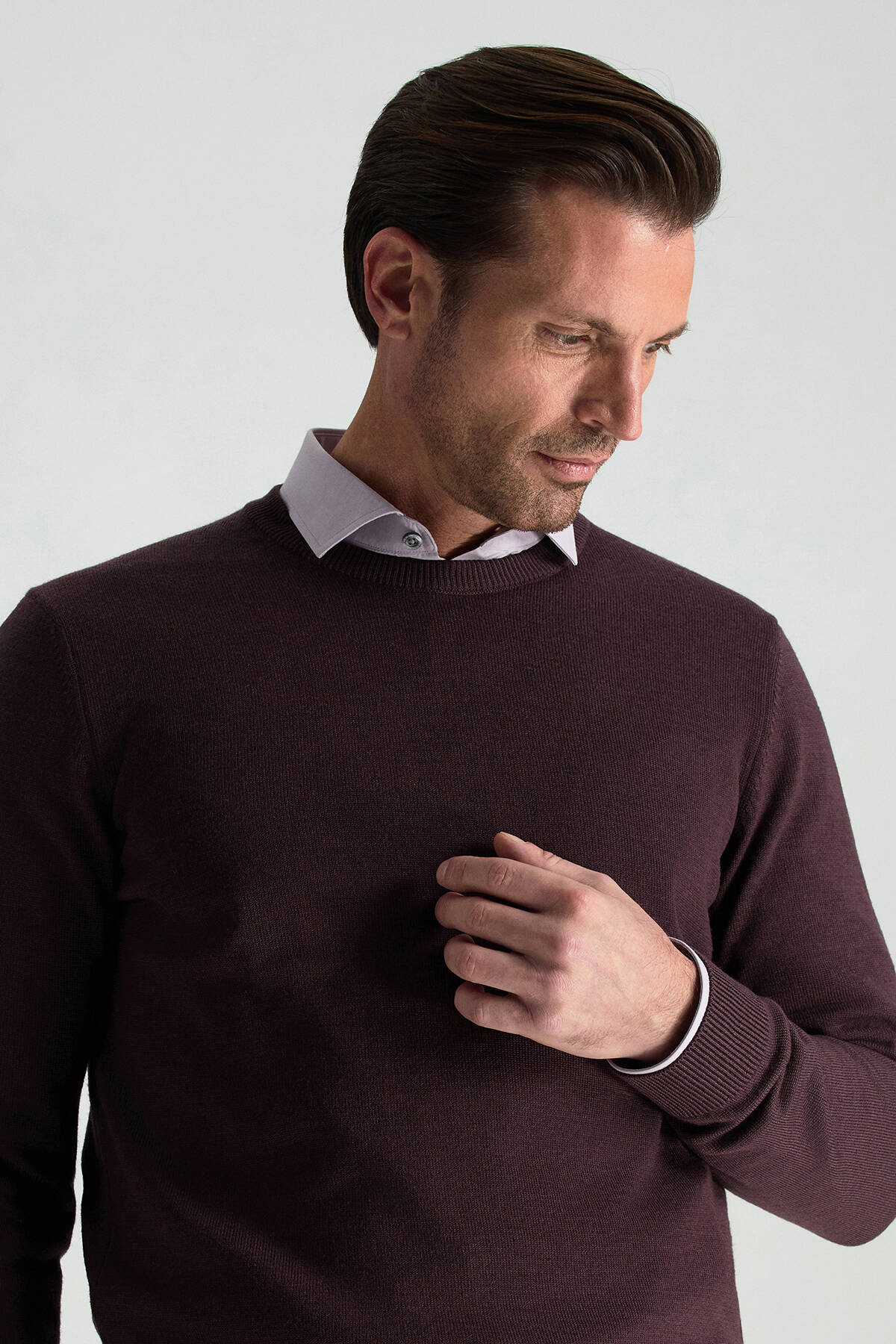 Merino Yünü Bisiklet Yaka Bordo Triko Kazak
