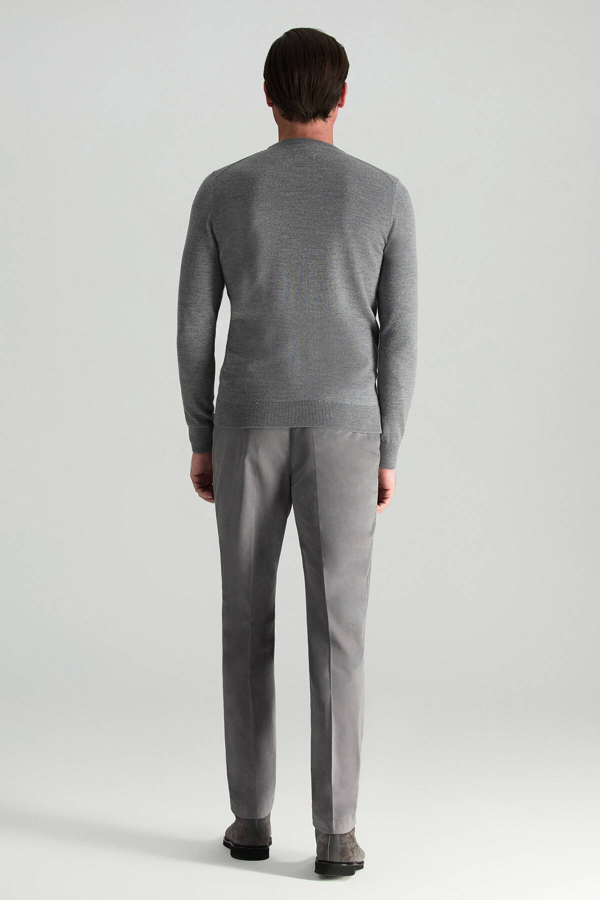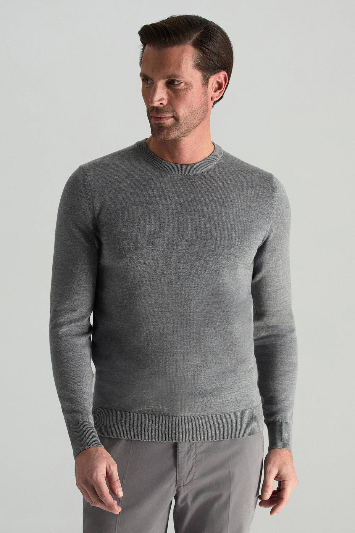Merino Yünü Bisiklet Yaka Gri Triko Kazak
