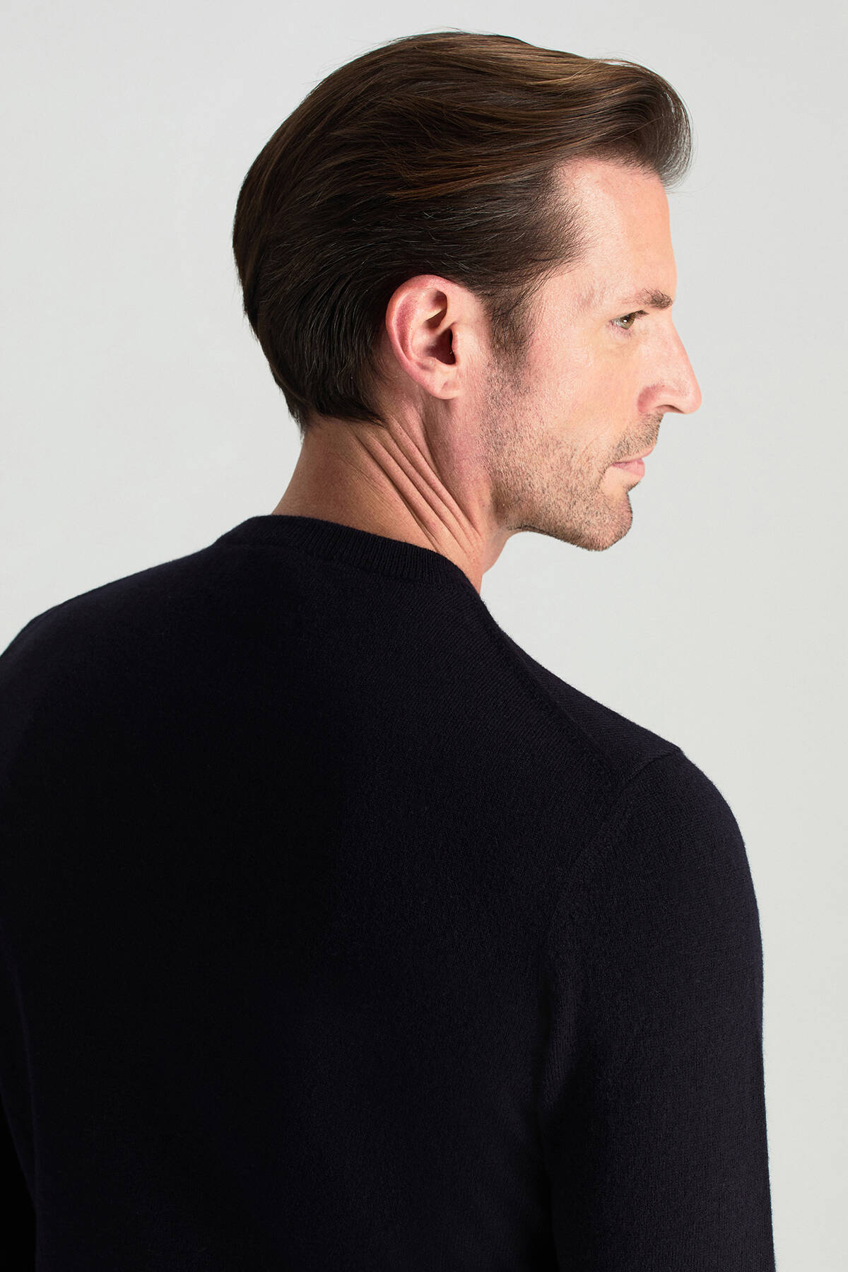 Merino Yünü Bisiklet Yaka Lacivert Triko Kazak