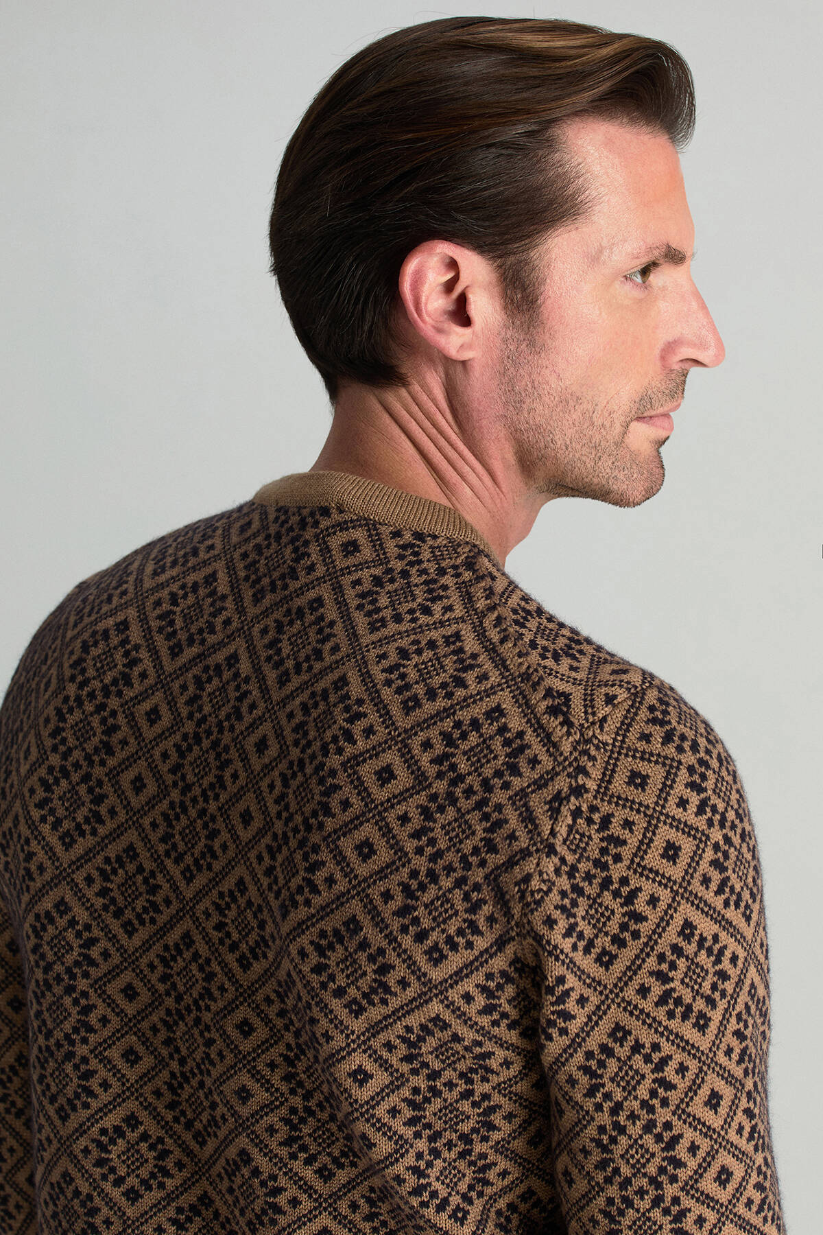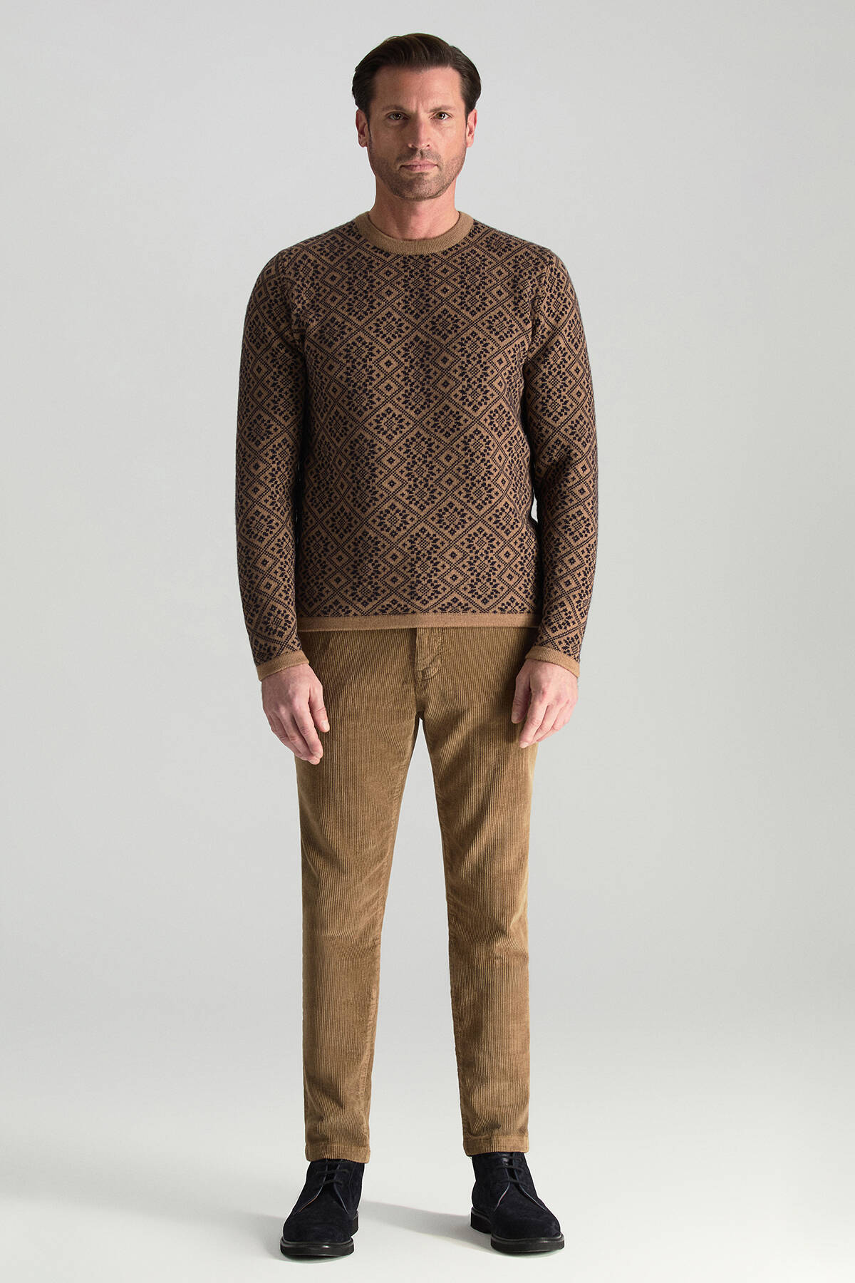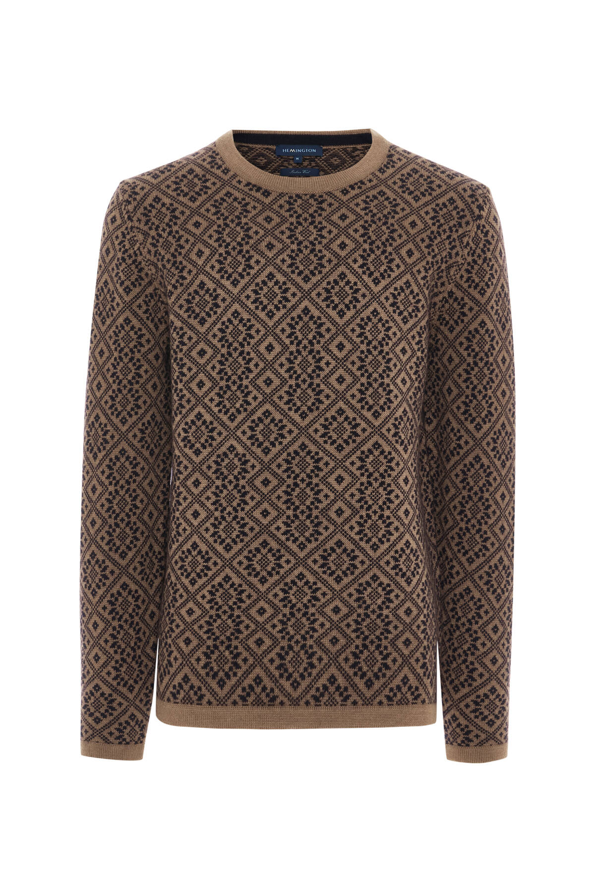 Merino Yünü Kar Desenli Camel Triko Kazak