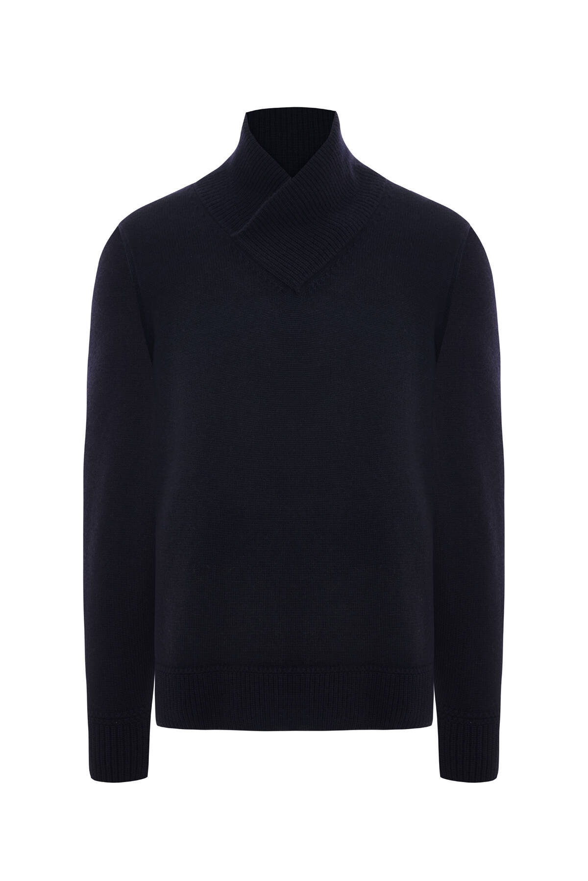 Merino Yünü Şal Yaka Lacivert Triko Kazak