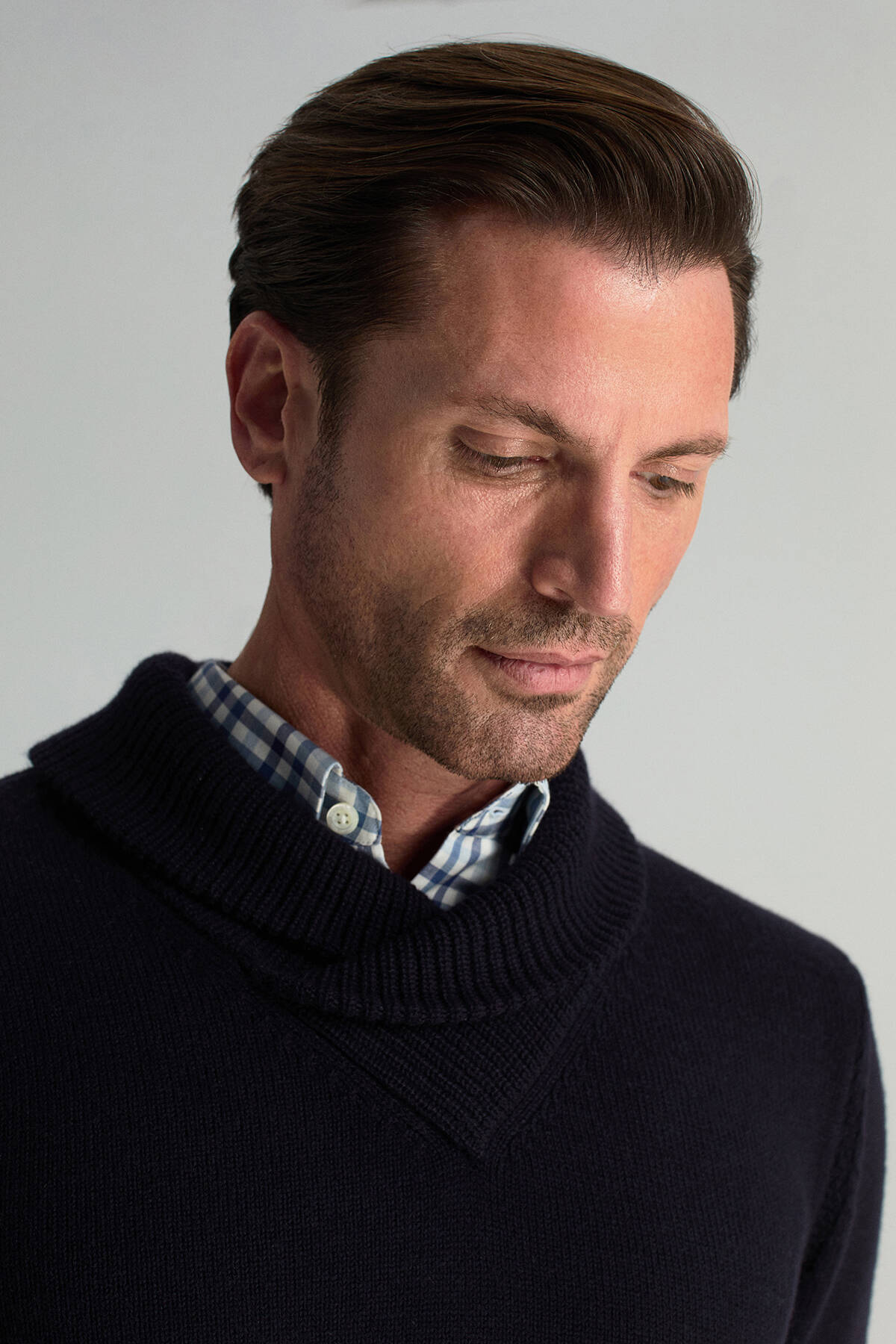 Merino Yünü Şal Yaka Triko Kazak