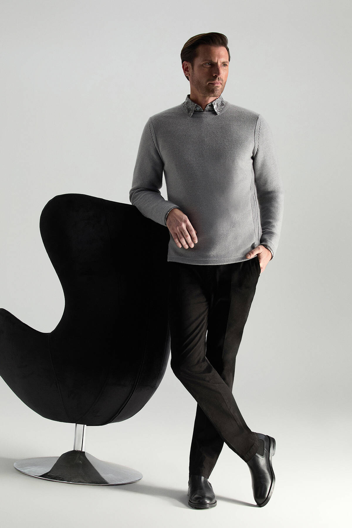 Sadelikten gelen şıklığı ince detaylarla buluşturan bu açık gri triko kazak, her ortamda dengeli bir stil yaratmak isteyenler için tasarlandı. İtalyan merino yün ipliğinin doğal nefes alabilen yapısı, gün boyu ferah ve hafif bir kullanım sağlar. Bisiklet yaka kesimi zamansız bir siluet sunarken, şerit detaylar tasarıma hareket ve modern bir dokunuş katar. Tek başına kullanıldığında net ve temiz bir görünüm yaratır; gömlek üzerine giyildiğinde ise sofistike bir katman etkisi sağlar.