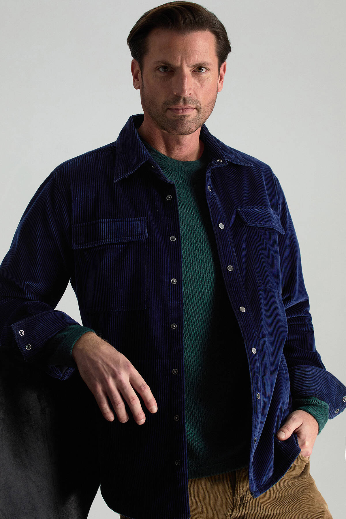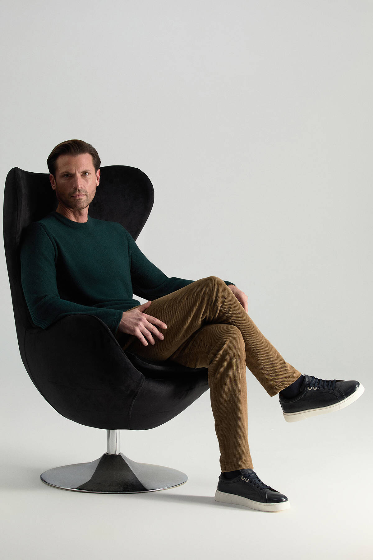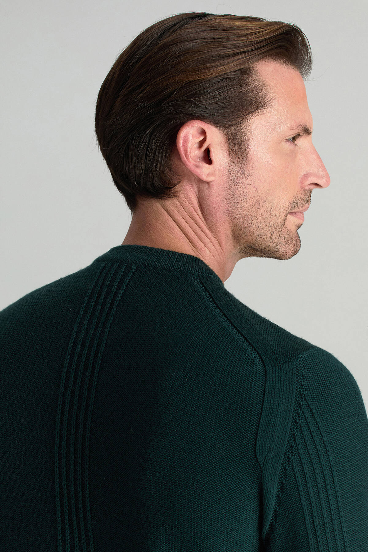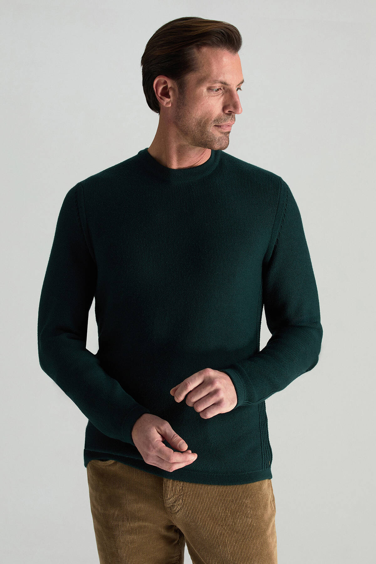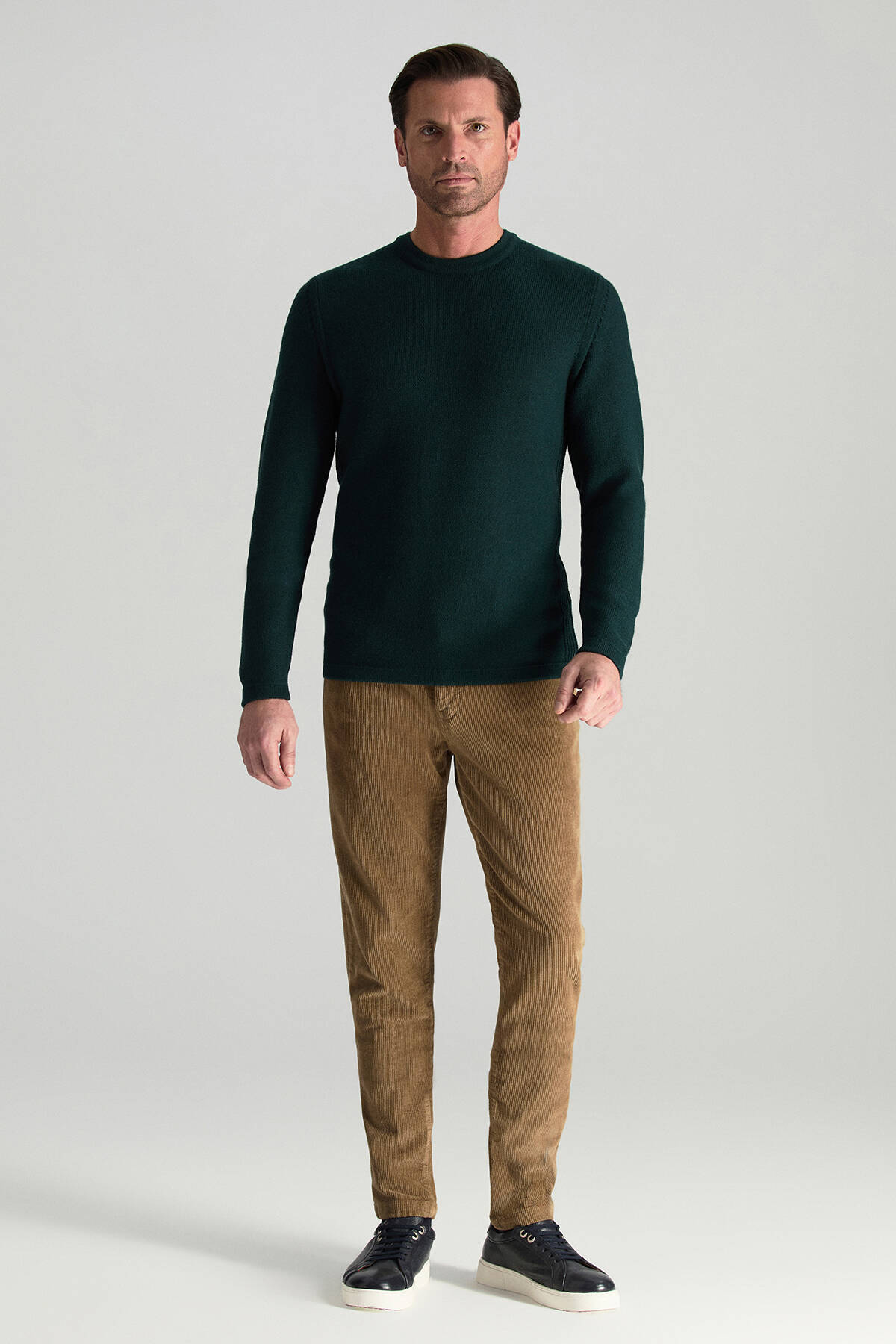 Doğadan ilham alan koyu yeşil tonu ile bu triko kazak, ilk anda sakin ama güçlü bir etki yaratır. Şerit detayları tasarıma ince bir dinamizm katarken, bisiklet yaka formu zamansız ve dengeli bir görünüm sunar. İtalyan merino yün ipliğinden üretilen nefes alabilen ince yüzeyi sayesinde hafif yapısına rağmen sıcak tutar. Gömlekle birlikte kullanıldığında iş stiline zarif bir dokunuş ekler, tek başına giyildiğinde ise yalın bir şıklık sağlar.