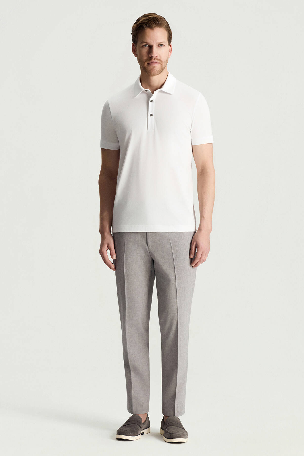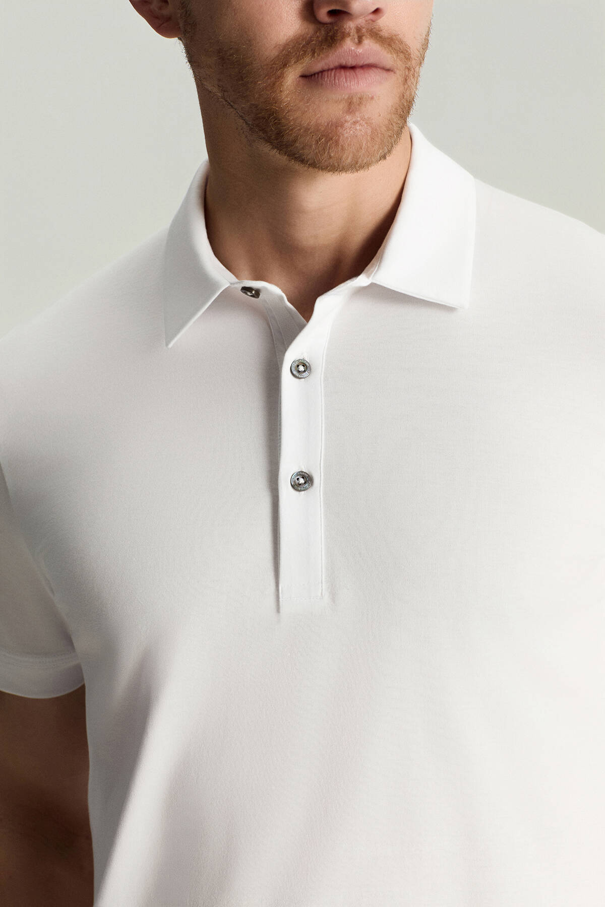 Merserize Pamuk Beyaz Polo Yaka T-Shirt