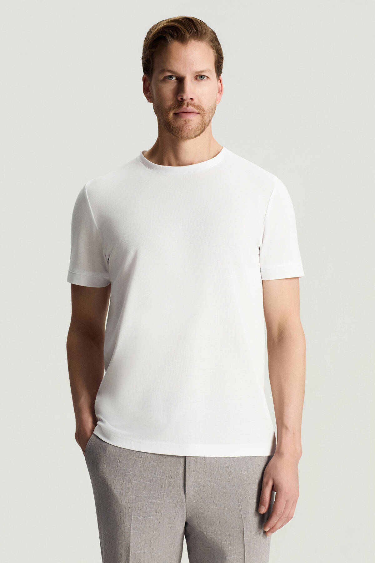 Merserize Pamuk Bisiklet Yaka Beyaz Basic T-Shirt