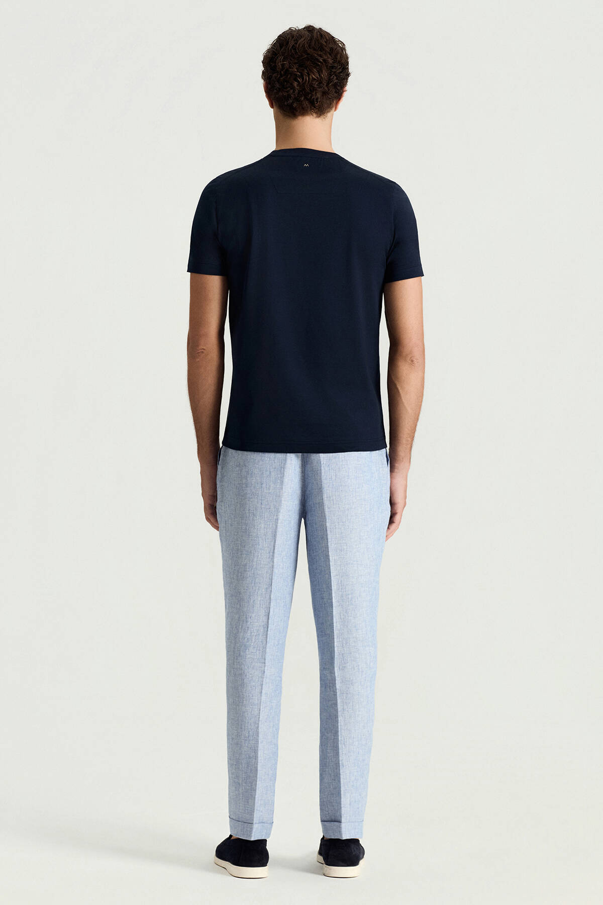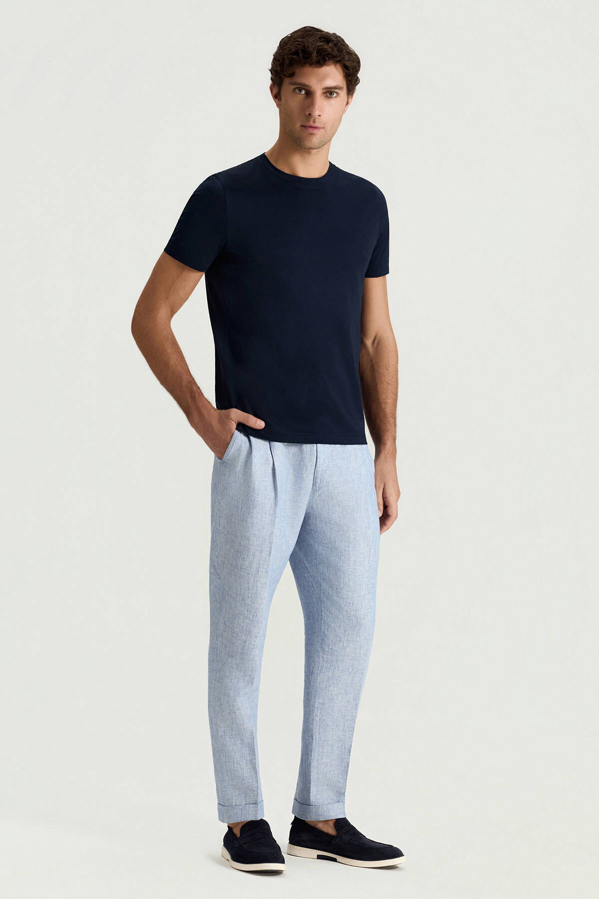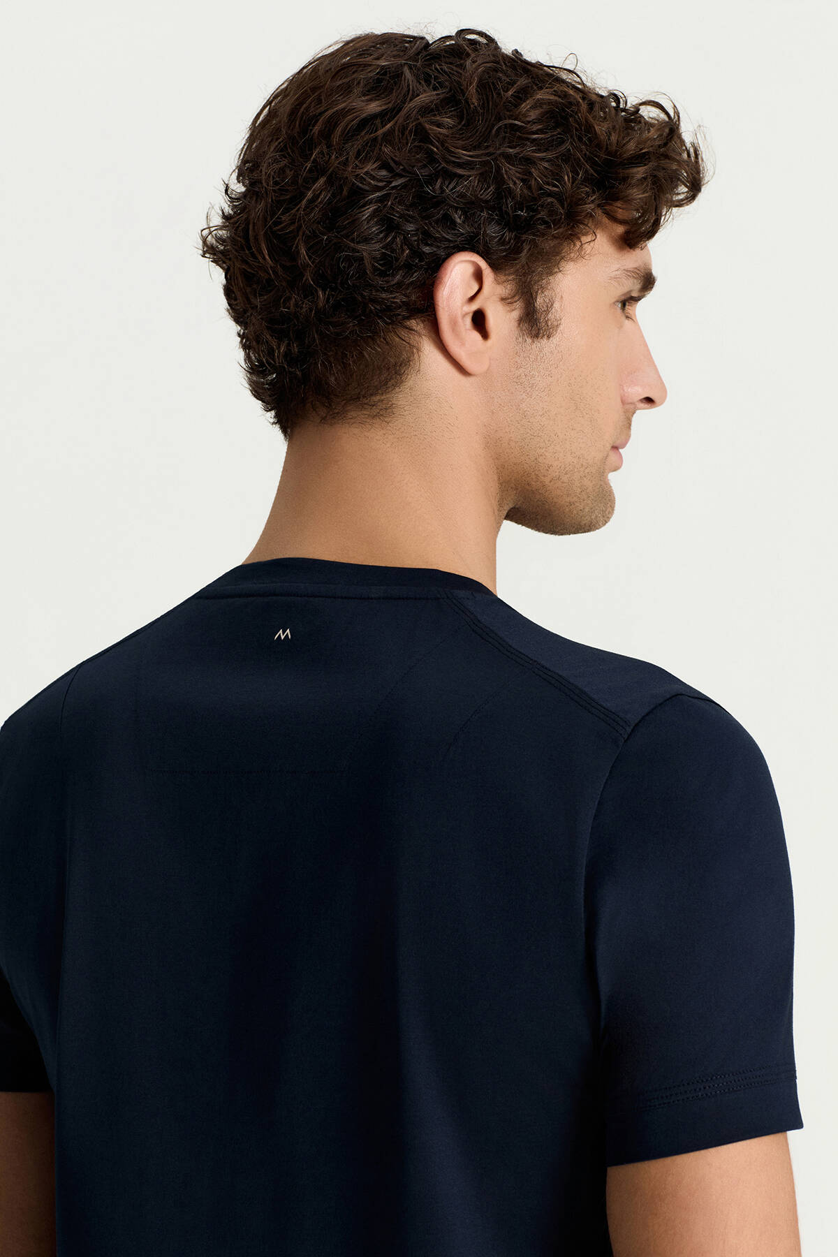 Merserize Pamuk Bisiklet Yaka Lacivert T-Shirt