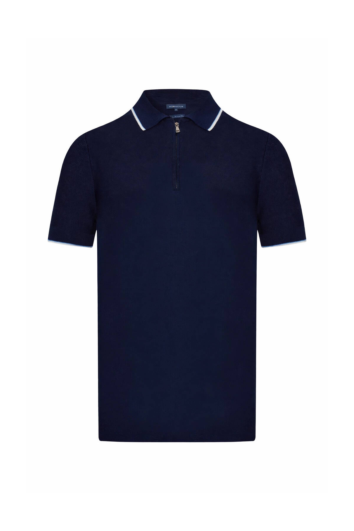 Merserize Pamuk Fermuar Detaylı Lacivert Triko Polo